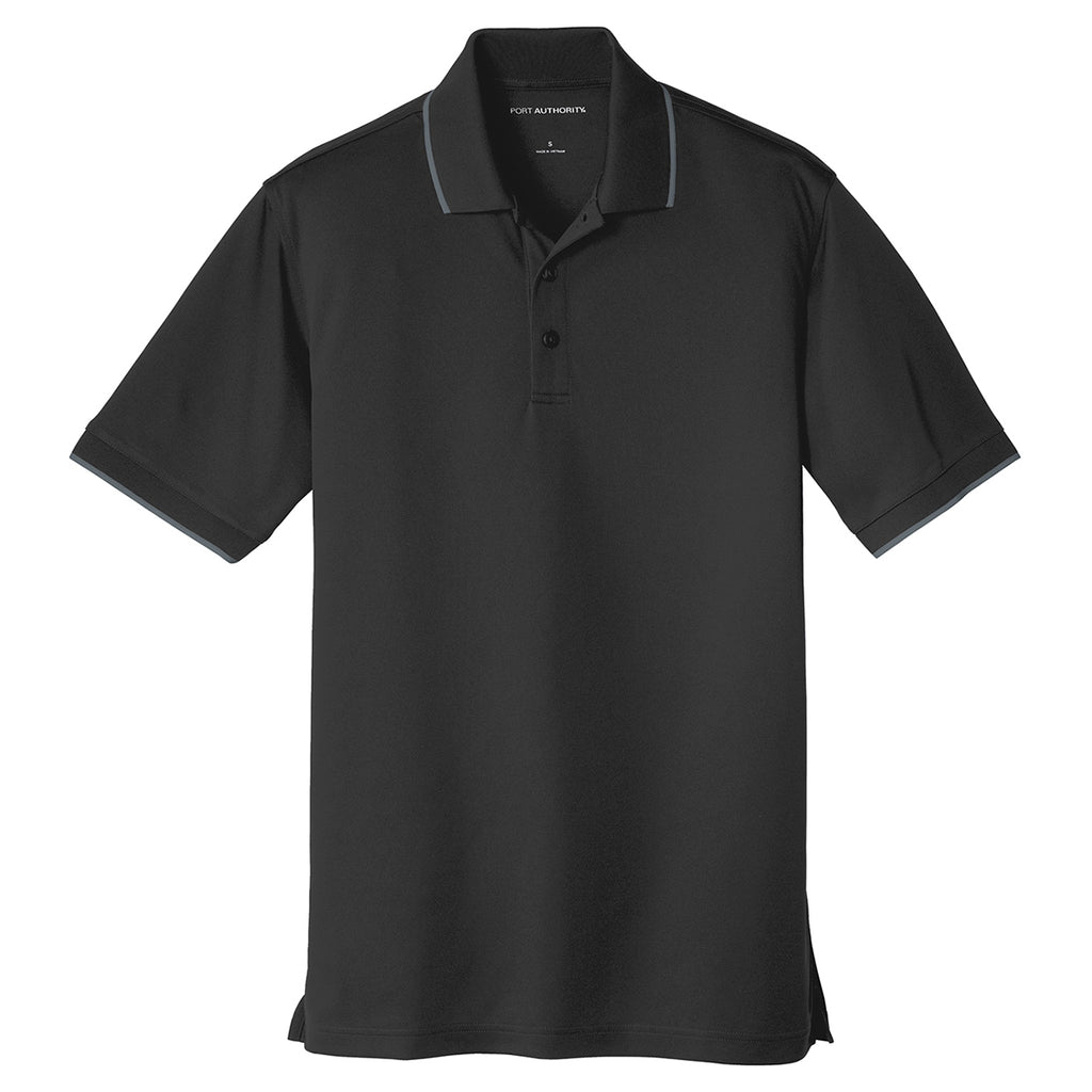 Port Authority Men's Deep Black/Graphite Dry Zone UV Micro-Mesh Tipped Polo