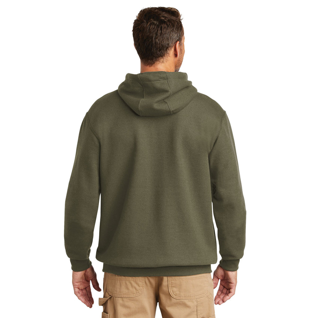 Carhartt is the working man's brand, and what better way to promote your hard working company than screen printing your logo on this sweatshirt. Men, what do you want your sweatshirt to be? Chances are, you want it to be a no-frills, no-nonsense kind of sweatshirt something you can wear anywhere, feel comfortable, and call it a day. But what about the details that go into making a sweatshirt of that kind of quality?Well, let's examine what this Screen Printed Carhartt Men's Moss Midweight Hooded Sweatshirt brings to the table: an attached three-piece hood with a draw-cord closure? Check. Lightweight cotton/polyester fabric? Check. A front handwarmer pocket that actually helps warm your hands? Check. The only thing we're missing here is your custom logo, planted right on the front.
