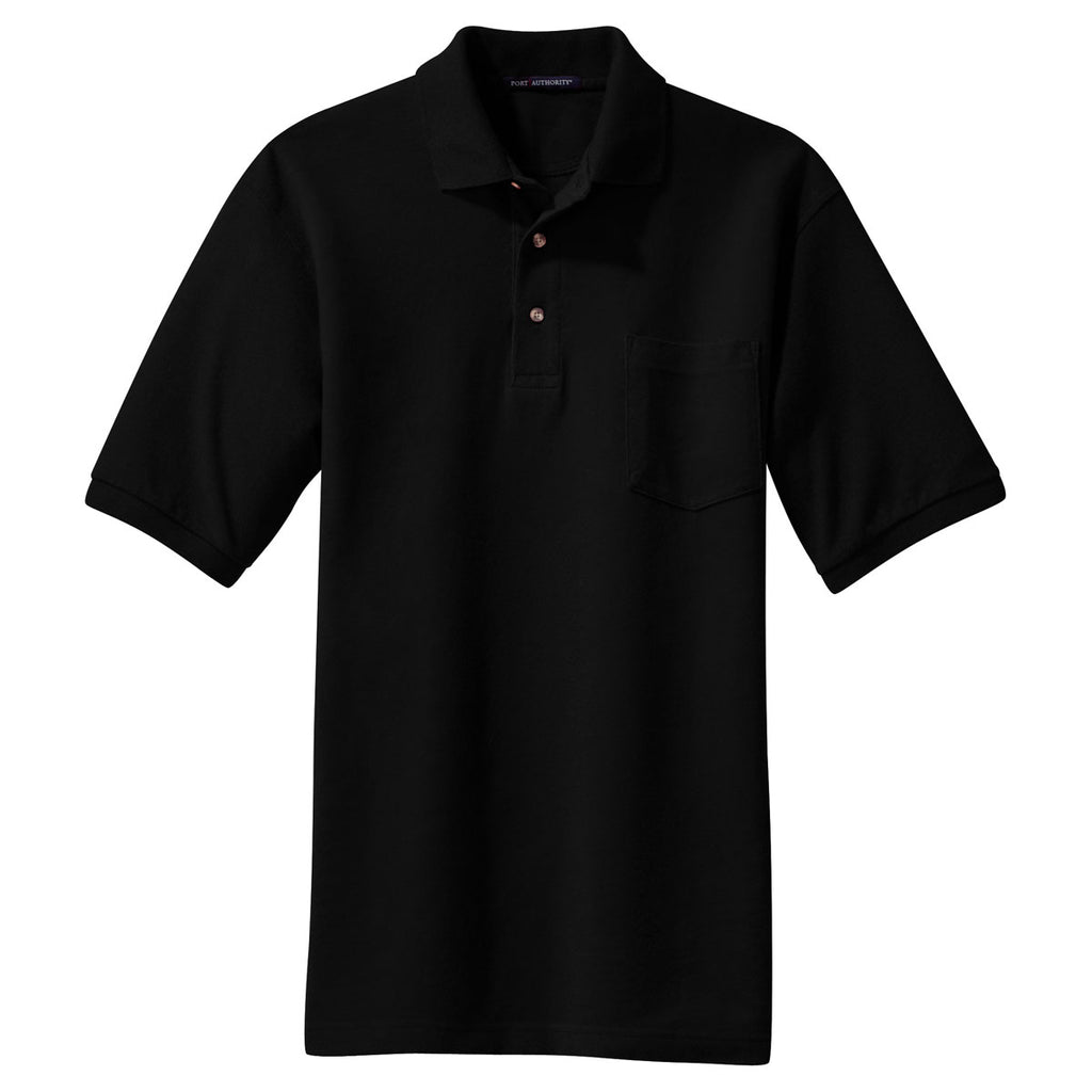 Port Authority Men's Black Pique Knit Polo with Pocket