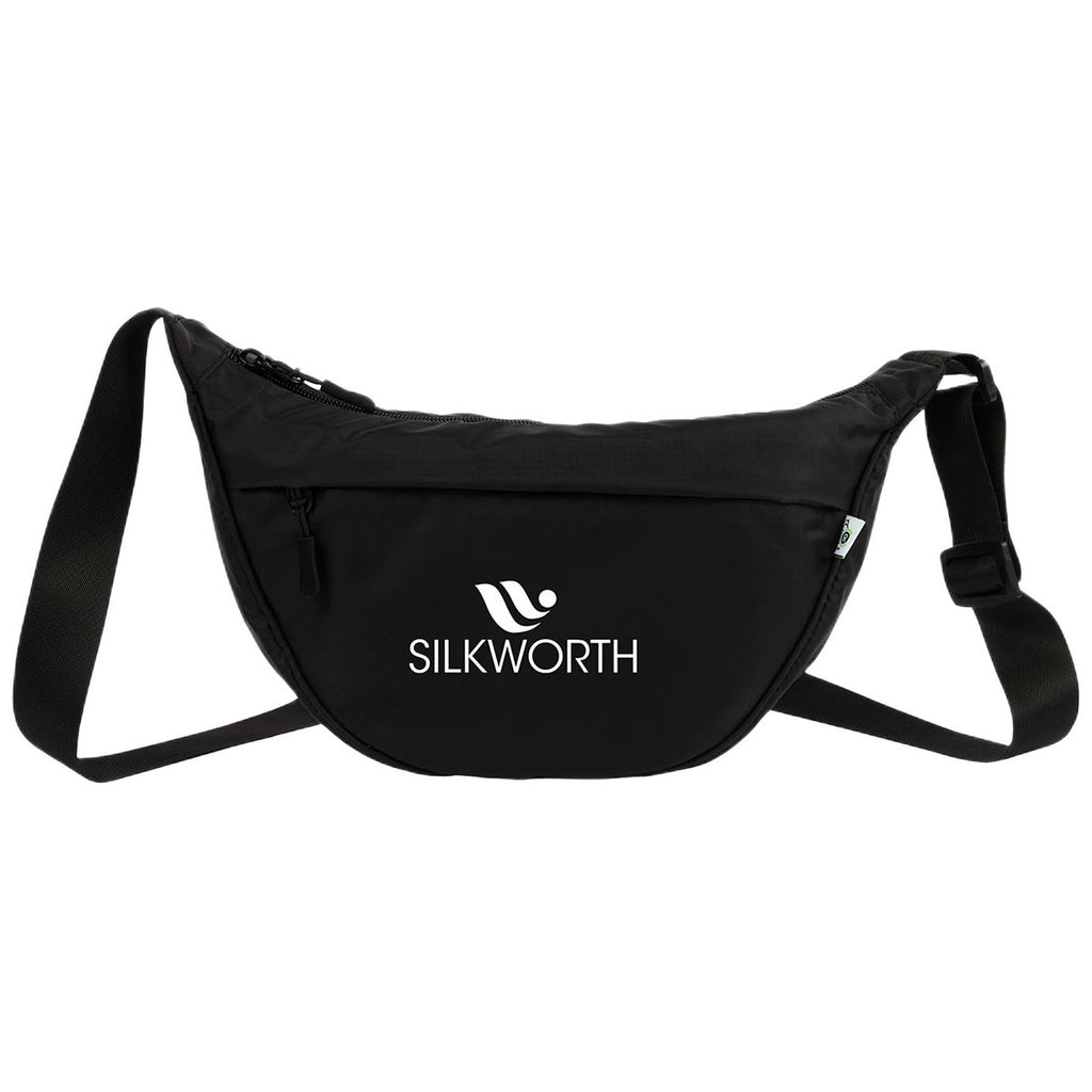 The Logomark Black Misha Repreve Crossbody Shoulder Bag is a sleek corporate gift made with Repreve recycled fabric. Lightweight, water-resistant, and travel-friendly, it's perfect for professionals on the go or sustainable branding campaigns. Add your logo to elevate your brand while supporting eco-conscious practices.The minimum order for this product is 50 pieces.