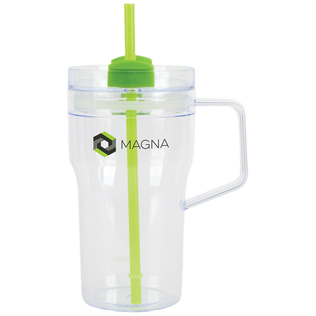 The Logomark Lime Elliott 20 oz. Clear AS Travel Mug is a contemporary corporate drinkware choice with transparent style. Featuring a spill-resistant lid and wide opening, it accommodates iced or hot beverages, fruit infusions, and smoothies. Lightweight and reusable, it's perfect for office use, wellness gifting, or branded retail seeking vibrant, functional hydration tools.The minimum order for this product is 100 pieces.