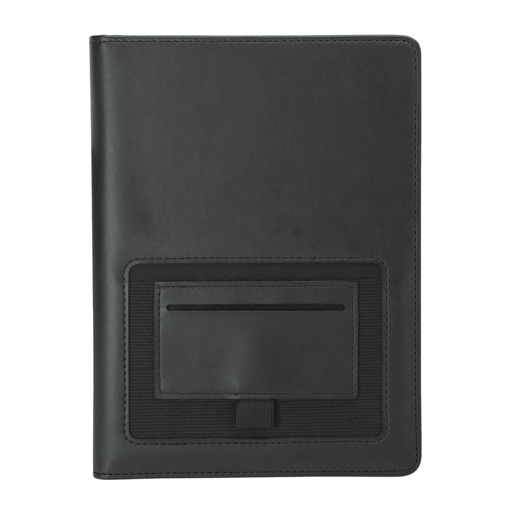 Look to compartmentalize your life? You're going to need a decent folio. The Sovrano Black Greenville Junior Tech Padfolio is designed for tech-savvies. It will fit everything from contracts on legal-size paper to the most recent issue of your favorite magazine. Incorporates a handy phone stand, A5 journal, and multiple pockets. Custom folios and padfolios with your company's logo help recipients feel closer to the brand or company and strengthens corporate swag.The minimum order for this product is 50 pieces