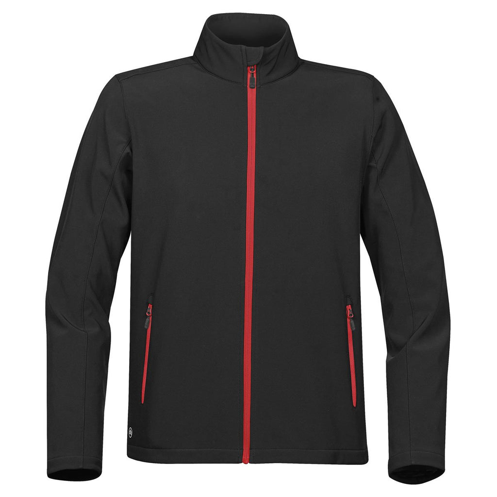 The Stormtech Men's Black/Bright Red Orbiter Softshell is an ideal corporate gift thanks to its versatile design that allows it to be worn by almost anyone and every day. It offers room for your company logo and the high contrast zippers are sure to help call attention to your brand. Wearers will appreciate that it offers lightweight protection from the elements. Several zippered pockets with a brushed tricot lining offer places to stash everyday items, including sunglasses and phone, without fear of scratching. Wearers will also love the chin saver and soft fleece backing that add comfort and warmth.Corresponding Women's Style: Stormtech Women's Black/Bright Red Orbiter Softshell
