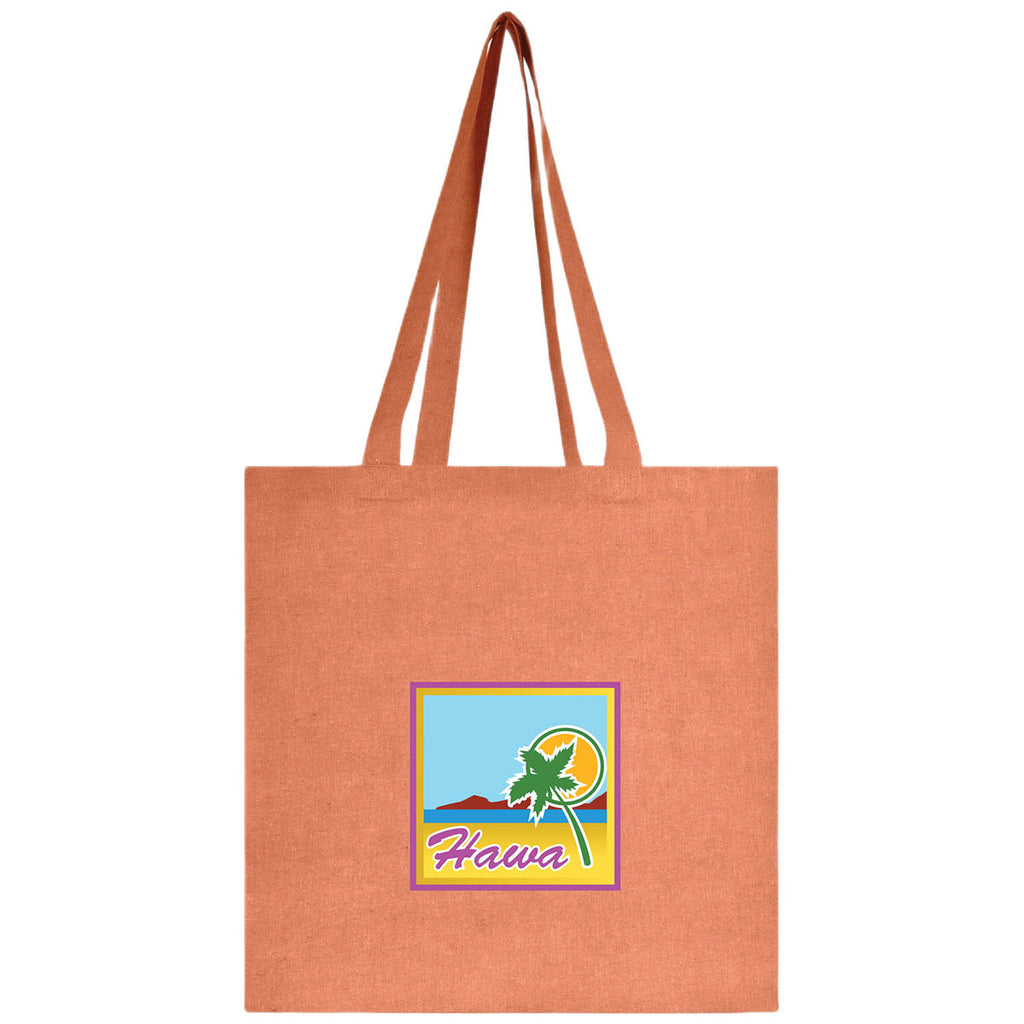 The Logomark Orange Vitality 4.5 oz Recycled Cotton Tote Bag is a lightweight custom staple for events, retail packaging, or green promotions. Made from recycled cotton, it's foldable, reusable, and budget-friendly. Great for eco-conscious branding at scale-without compromising style or message.The minimum order for this product is 150 pieces.