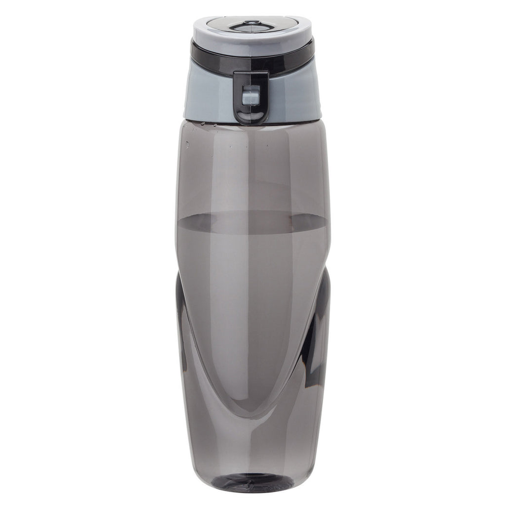 Sovrano Grey Conquest 32 oz. Tritan Water Bottle boasts a smoky body and colored sipper that brings on-the-go ease to hydration. Designed with integrated carry handle for secure grip. Promote your brand with this water bottle featuring strategic imprint area that will expose your logo or other custom graphics for maximum brand or event visibility.The minimum order for this product is 100 pieces
