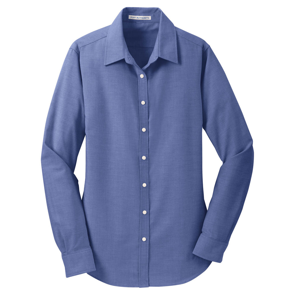 Conveying a sense of atmosphere and professionalism at the workplace might seem easy...until you start to contemplate what a good employee uniform might really look like. Then you realize there's one key phrase: dress shirts. This Port Authority Women's Navy SuperPro Oxford Shirt will provide the corporate apparel you need to create that atmosphere of professionalism. With your company logo affixed to the front, your employees can represent your brand without sacrificing their professionalism or their comfort.