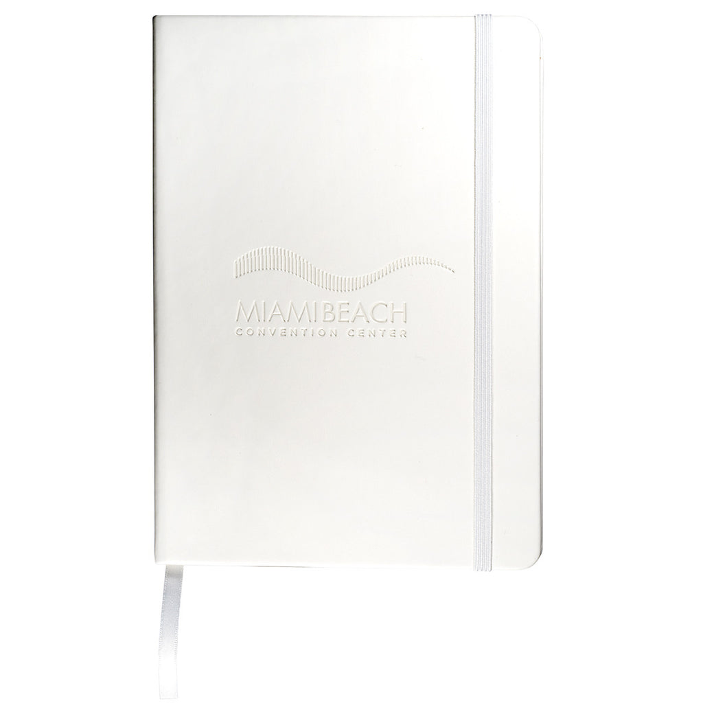 How do you reward the dedication and high-performance standards set by your team? The Leeman White Tuscany Journal represents a thoughtful corporate gift with the added bonus of including 3.25" wide by 3" tall imprint area to add your company logo. Now you have a cost-effective marketing tool that gets the word out about your brand. Rich faux leather and a polyester band ensure the Tuscany Journal enjoys a long product life. The elastic lop closure secures the 80 ruled pages that allow you to take notes during business meetings.