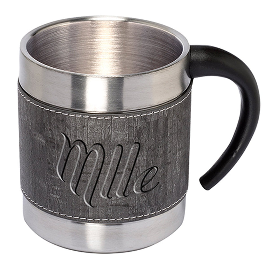 The minimum order for this product is 50 piecesLeeman uses the Deboss imprint method to create the 3.25" wide by 1.4" tall imprint area for you to attach your corporate logo on the Leeman Smoke Casablanca 10oz Coffee Cup. Double wall stainless steel ensures your hot beverages remain hot and your cold beverages remain cold for hours at a time. The natural weathered look and simulated cork textured sleeve complement the natural splendor you encounter during camping trips. Grip the heat resistant handle and never have to worry about a painful encounter that singes your hand. Hand wash the coffee cup to protect it against abrasions caused by dishwasher cycles.