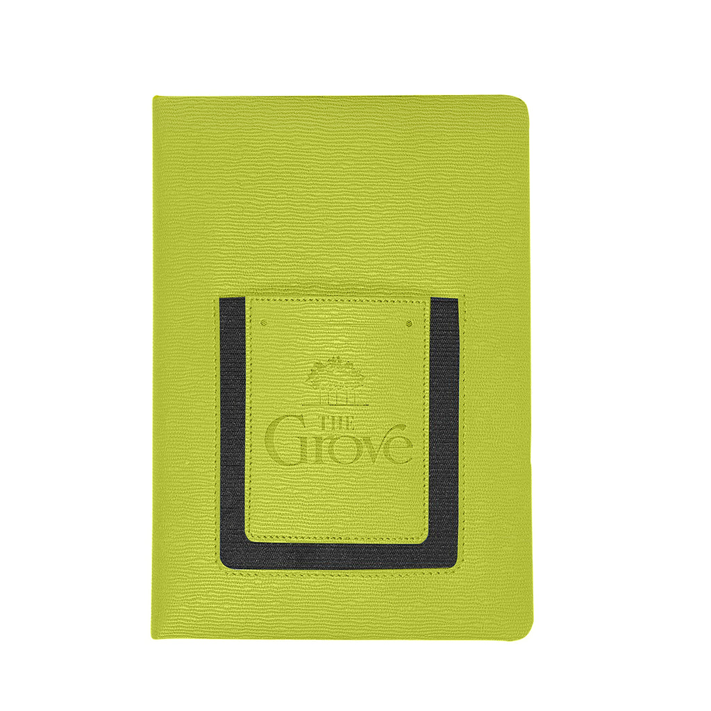 Elevate your business with this customizable Leeman Lime-Green Roma Journal with Phone Pocket. Features a built in smartphone pocket, ribbon page marker, smartphone pocket and 80 ruled sheets of cream paper. Customize this journal for a unique giveaway, sure to remind your customers of your business and customer service with an item that can be used on a daily basis!The minimum order for this product is 25 pieces.