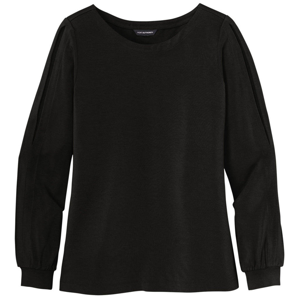Port Authority Women's Deep Black Luxe Knit Jewel Neck Top