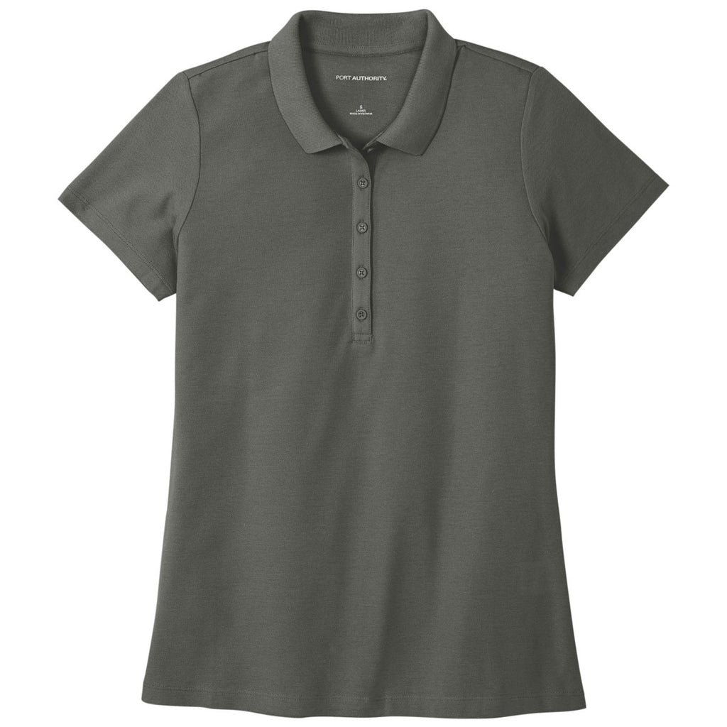 Design a custom embroidery for the Port Authority Women's Storm Grey SuperPro React Polo for a look that can go from the office to dinner with friends with complete ease. This classic uniform style meets performance wear in this poly cotton polo that is ready for anything life can bring. Add a company logo to create a corporate uniform that is comfortable and convenient with stain release, snag resistance, and Easy Care qualities. The flat knit collar with five button placket makes this polo easy to layer or wear alone. Enjoy a day with friends, at work, or anywhere you please and look great while doing it.Corresponding Men's Style:Port Authority Men's Storm Grey SuperPro React Polo
