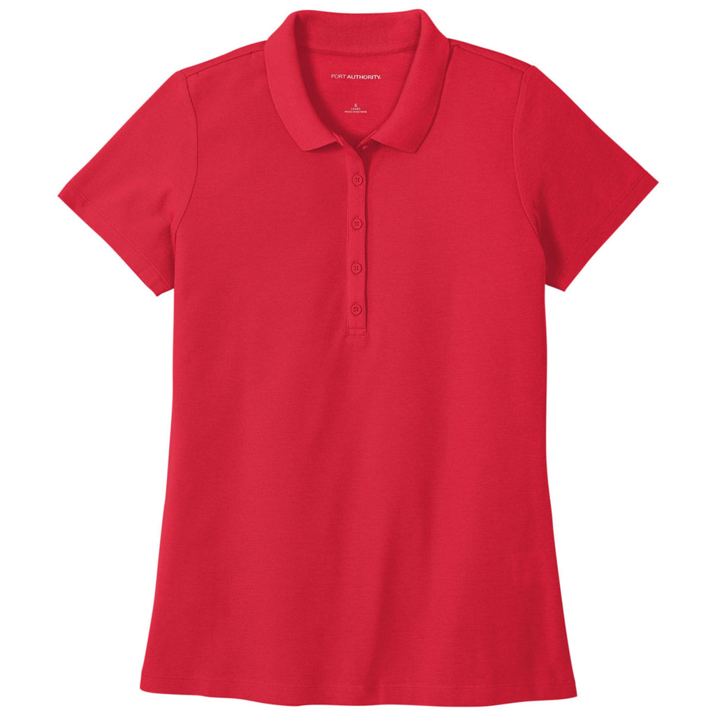 Design a custom embroidery for the Port Authority Women's Rich Red SuperPro React Polo for a look that can go from the office to dinner with friends with complete ease. This classic uniform style meets performance wear in this poly cotton polo that is ready for anything life can bring. Add a company logo to create a corporate uniform that is comfortable and convenient with stain release, snag resistance, and Easy Care qualities. The flat knit collar with five button placket makes this polo easy to layer or wear alone. Enjoy a day with friends, at work, or anywhere you please and look great while doing it.Corresponding Men's Style:Port Authority Men's Rich Red SuperPro React Polo