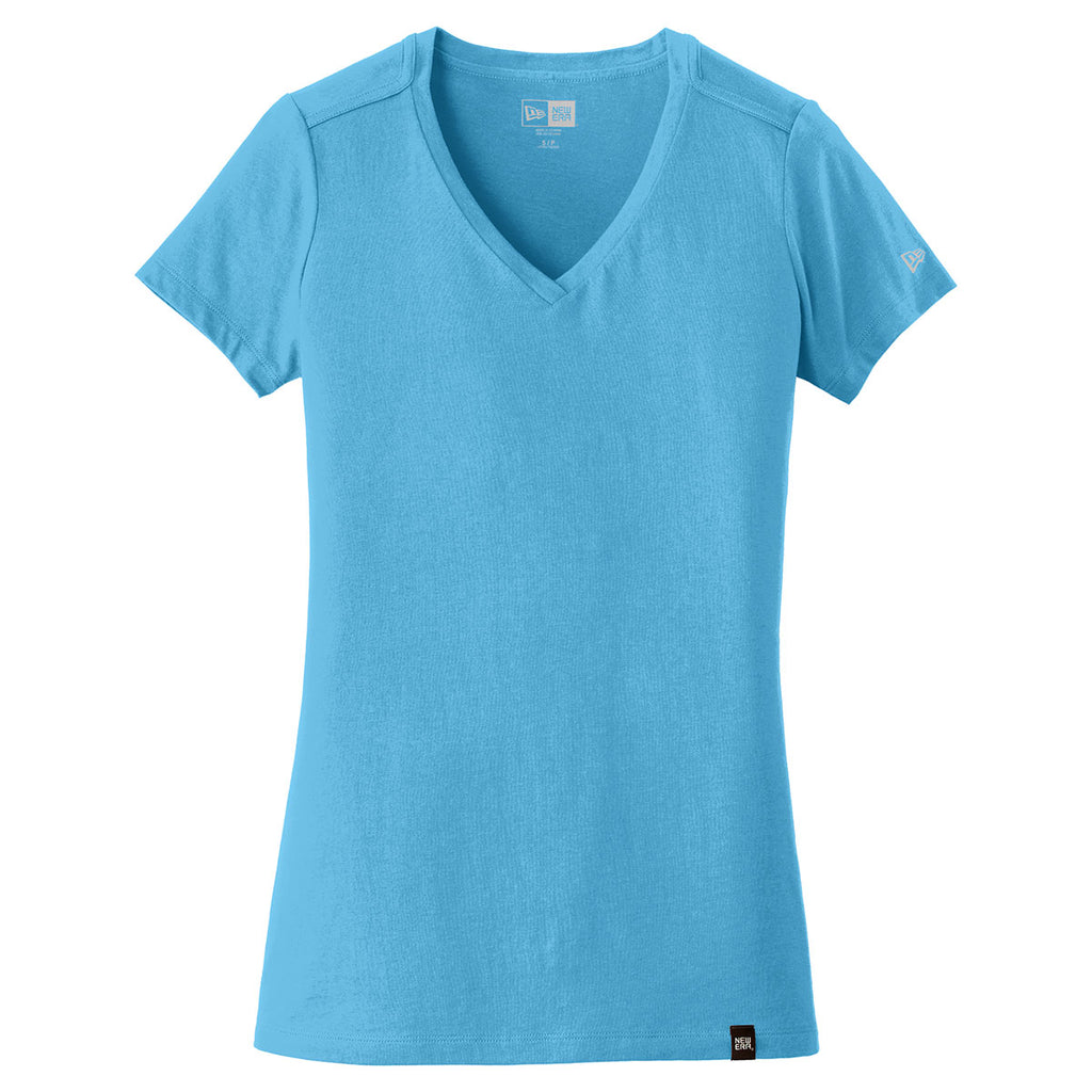 Say thank you to the hard working women on your corporate team by giving the chic New Era Women's Sky Blue Heritage Blend V-Neck Tee. With a crossover v-neck design, the tee opens up the area around the neck to create more comfort. Lightweight cotton and polyester fabric combine to produce a tee that feels soft against the skin and resists rips and tears. Wear the multi-purpose tee to perform strenuous home improvement projects, as well as when you enjoy a night dining outdoors with close friends. Attach a custom logo on the large imprint area to build the trust required to convert customer prospects into loyal patrons of your business.