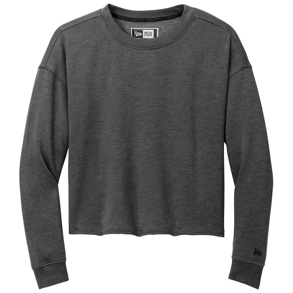 The ladies on your team will love showing off your company's custom logo when it's added to the front of the New Era Women's Black Heather Tri-Blend Fleece Crop Crew. A slightly cropped cut gives this luxuriously soft long-sleeved tee a contemporary look that is currently trending.