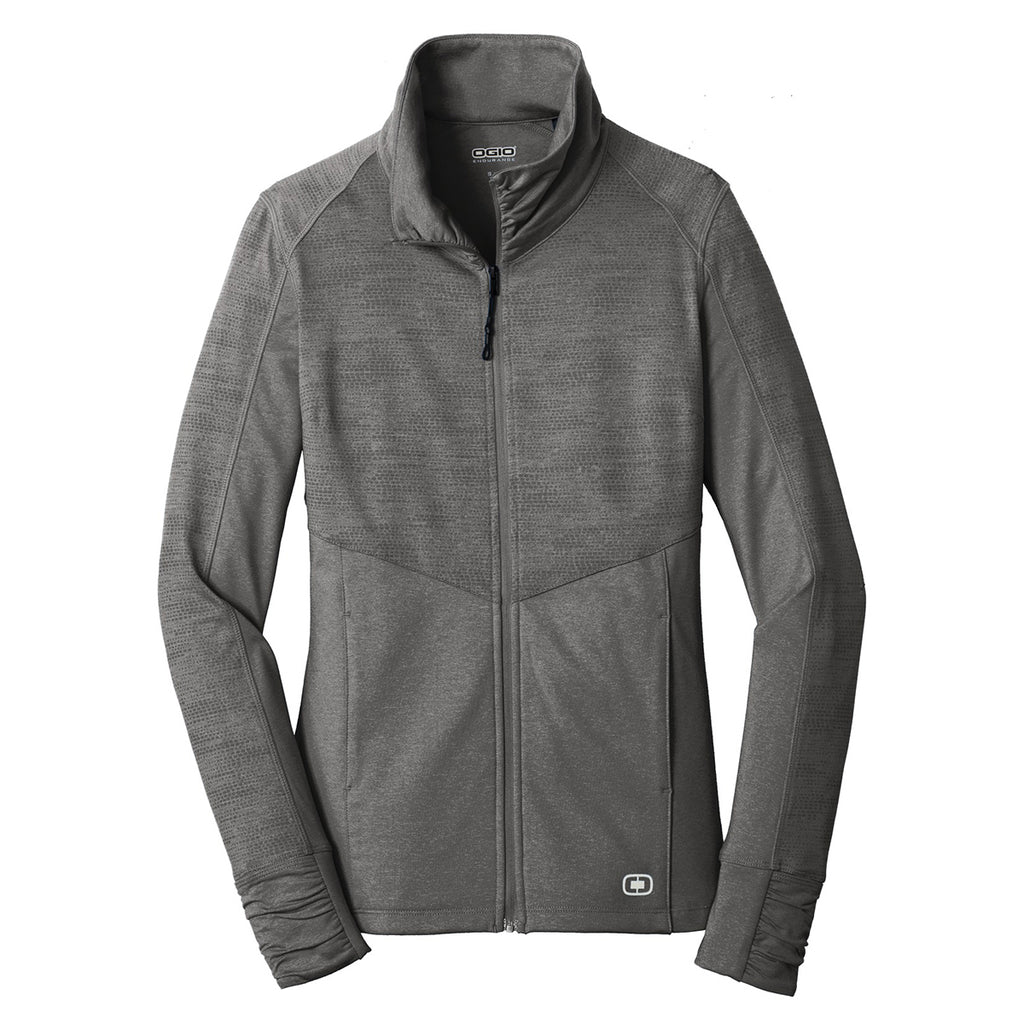 Make the embroidered OGIO Endurance Women's Track Grey Heather Sonar Full-Zip the corporate gift that leaves a lasting impression on your loyal customers. With flat lock seams for supreme comfort, the versatile full-zip jacket contains 90% polyester that resists rips and tears. The tonal printed pattern on the smooth heather yarn-dyed fabric complements the custom logo you add to promote your company everywhere you go. Wear the jacket as an inner layer for the days when the weather takes a turn for the worst. This piece is a great companion for your day at the office or after hours to the gym or on errands around town. With your custom logo attached this jacket is ready for years of use.