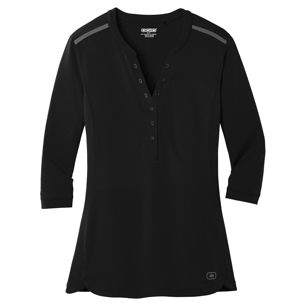 Perfect to wear at business conferences or company events, the embroidered OGIO Women's Blacktop Fuse Henley long sleeve shirt combines long lasting performance and a chic appearance making it perfect for any occasion. Great for layering with a sweater or jacket. This shirt will be a nice addition to your wardrobe for both days at the office and after hours. Make sure you reach customer prospects by displaying the custom logo attached on the large imprint area. Your employees will be happy to receive a new and stylish piece of corporate apparel.