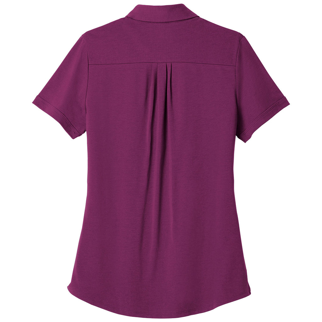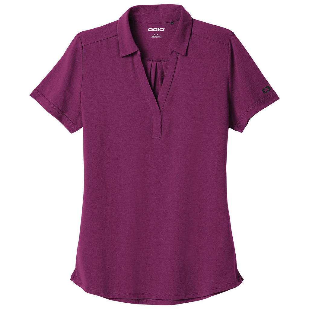 Make a lasting impression on customers by ordering the custom logoed OGIO Women's Purple Fuel Limit Polo for the members of your corporate team. As one of the most stylish short sleeve shirts for employee uniforms, the cotton and polyester blended polo withstands the rigors of frequent use to deliver years of fashionable performance. Stylish open Y-neck placket exudes class, while the set-on, cuffed sleeves allow for optimal arm movement flexibility. Moisture wicking technology ensures maximum comfort throughout every workday. Attach your company logo on the large screen embroidered area to power your brand to the top of the competition.