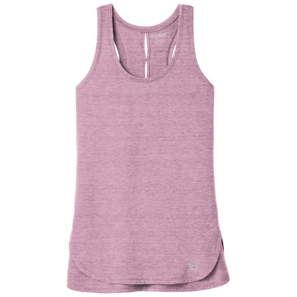 With a drape that allows for easy body movements, the custom logoed OGIO Women's Lilac Heather Luuma Tank offers the ultimate in fashion versatility. Wear the tank as an only garment during summer and layer it under a pullover and winter jacket when Old Man Winter arrives. Side vents and the self-fabric neck and armholes create an innovative design that will gain the attention of professional peers at networking events. Display the company logo screen printed on the tank to attract potential customers to your products and services. Moisture wicking technology delivers optimal all-day comfort.