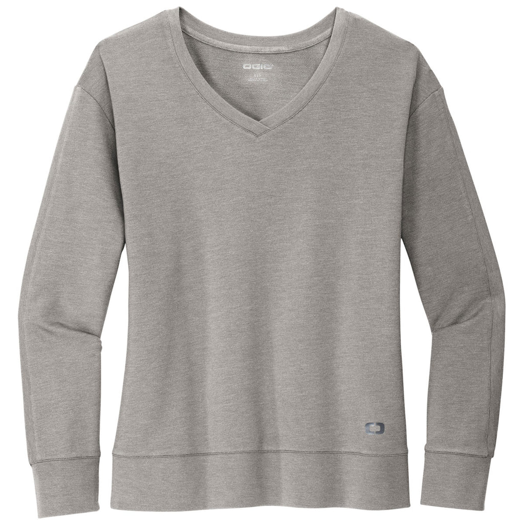 OGIO Women's Petrol Grey Heather Luuma Flex Long Sleeve V-Neck