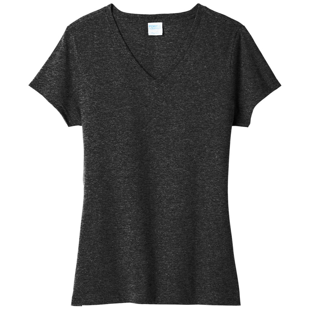 Port & Company Women's Black Heather Tri-Blend V-Neck Tee