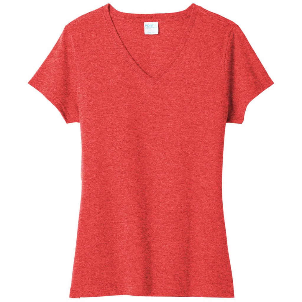 Port & Company Women's Bright Red Heather Tri-Blend V-Neck Tee