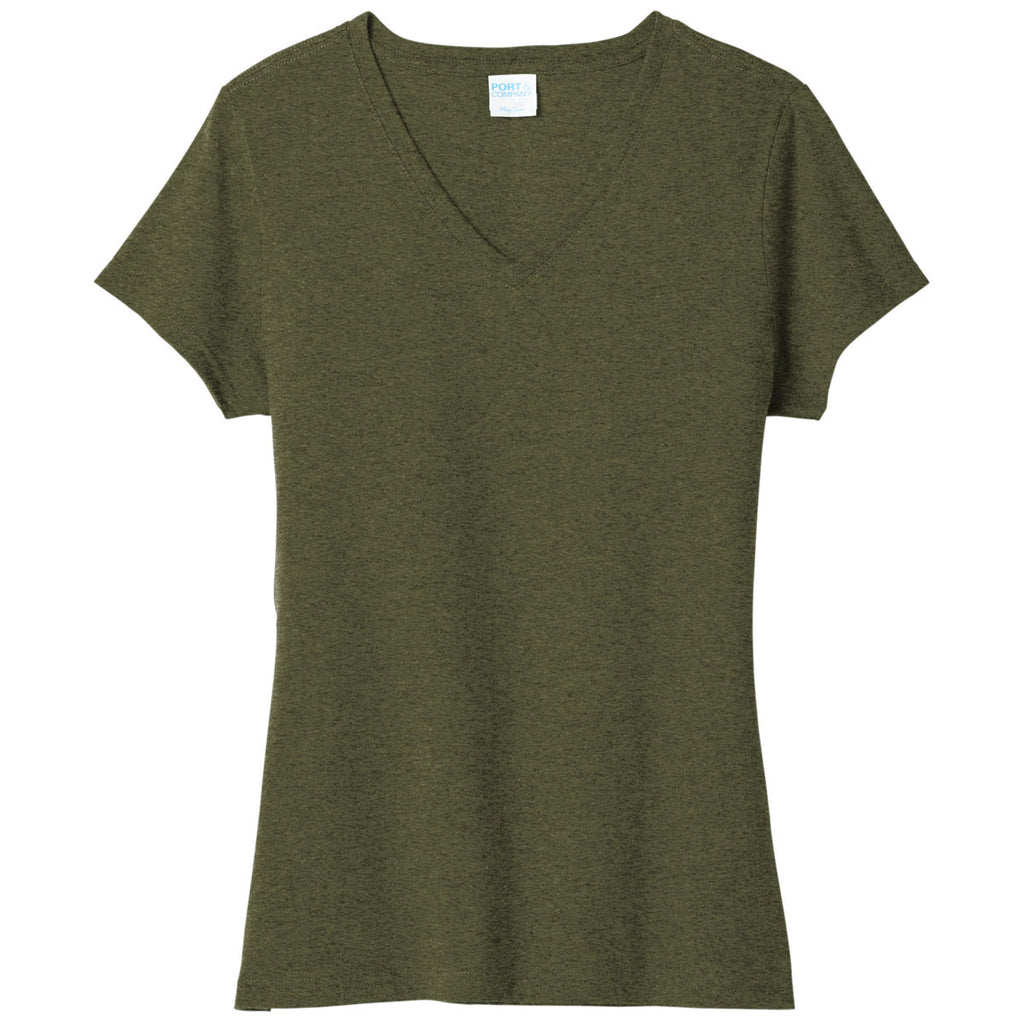 Port & Company Women's Military Green Heather Tri-Blend V-Neck Tee