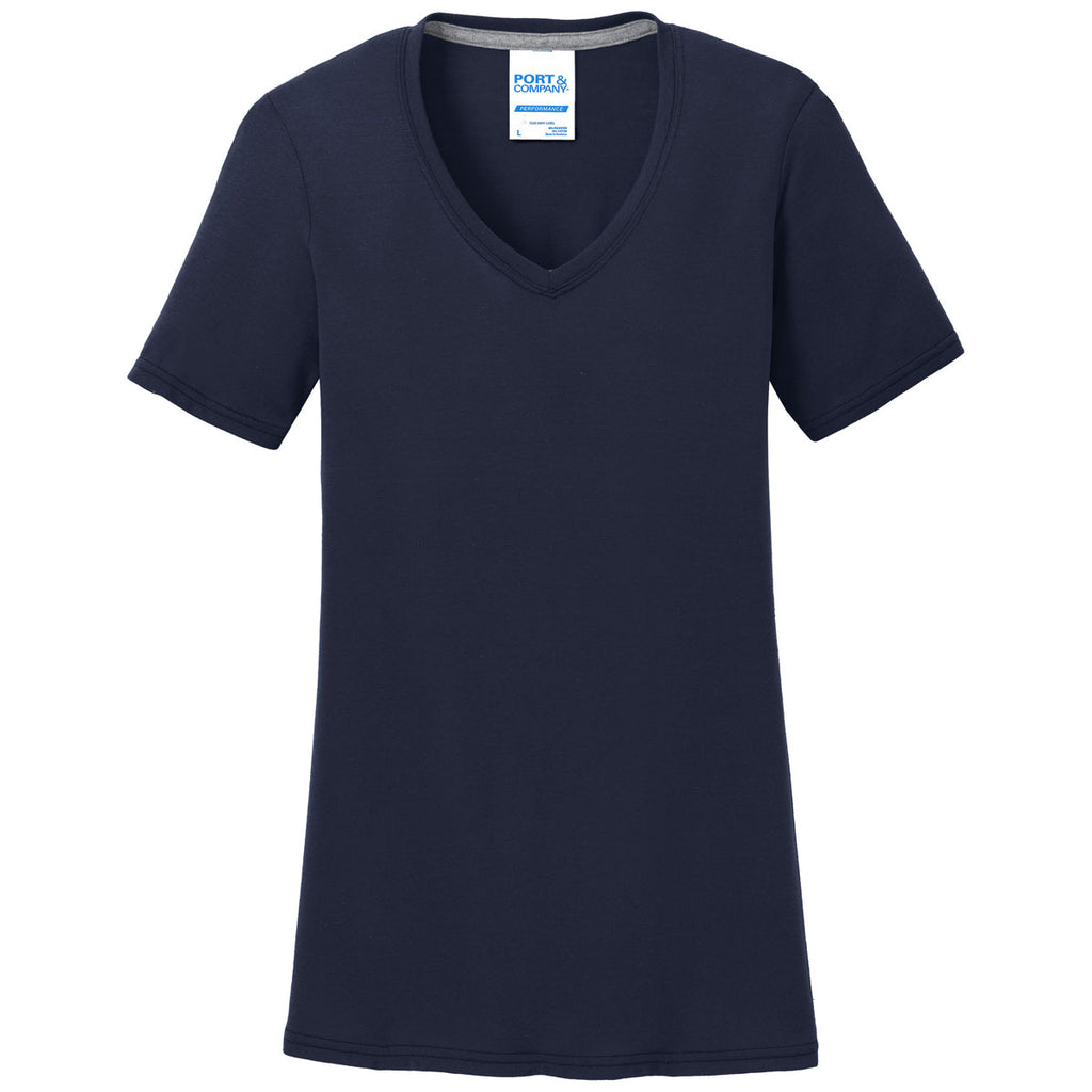 Port & Company Women's Deep Navy Performance Blend V-Neck TeeCorresponding Men's Style: Port & Company Men's Deep Navy Performance Blend Tee
