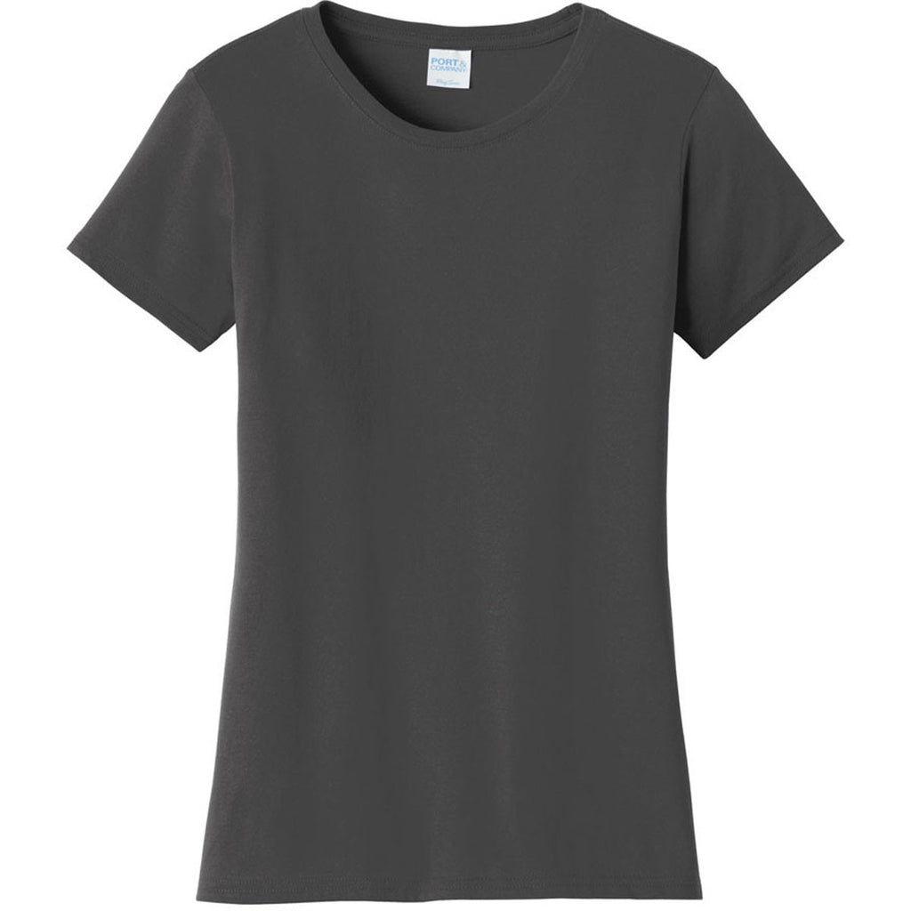 Do moisture laden t-shirts bog you down whenever you need to ramp up the competitive juices? Port & Company Women's Charcoal Fan Favorite Tee contain moisture wicking technology that quickly evaporates perspiration the instant it forms on your skin. The result is a cooling of the skin that invigorates your body. Set-in sleeves allow for more arm movement, which comes in handy on the golf course and tennis court. The super soft fabric endures countless wash and dry cycles, without any of the colors fading. One-hundred percent rugged polyester interlock resists rips and tears. Attach your company logo to the t-shirts to spread the word about your brand.