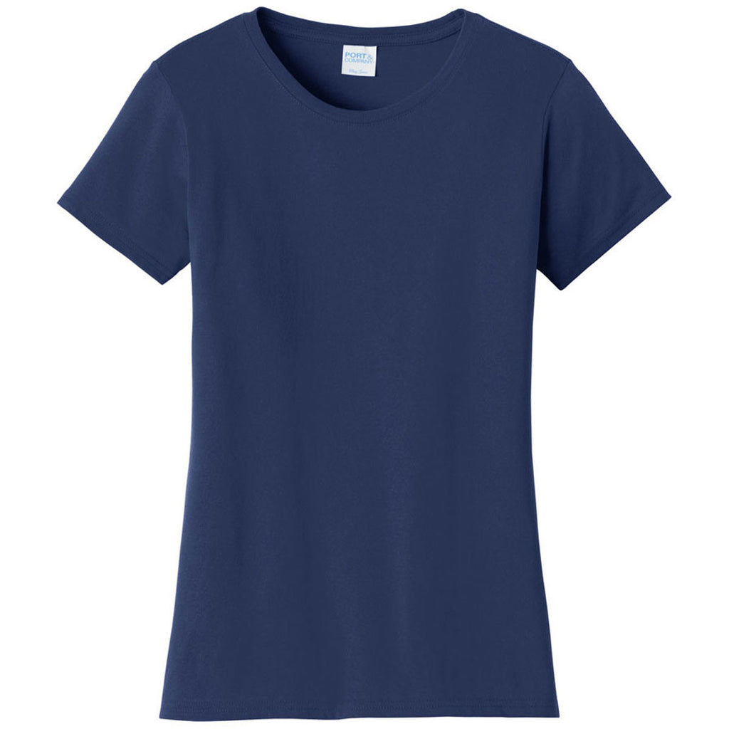 Do moisture laden t-shirts bog you down whenever you need to ramp up the competitive juices? Port & Company Women's Team Navy Fan Favorite Tee contain moisture wicking technology that quickly evaporates perspiration the instant it forms on your skin. The result is a cooling of the skin that invigorates your body. Set-in sleeves allow for more arm movement, which comes in handy on the golf course and tennis court. The super soft fabric endures countless wash and dry cycles, without any of the colors fading. One-hundred percent rugged polyester interlock resists rips and tears. Attach your company logo to the t-shirts to spread the word about your brand.