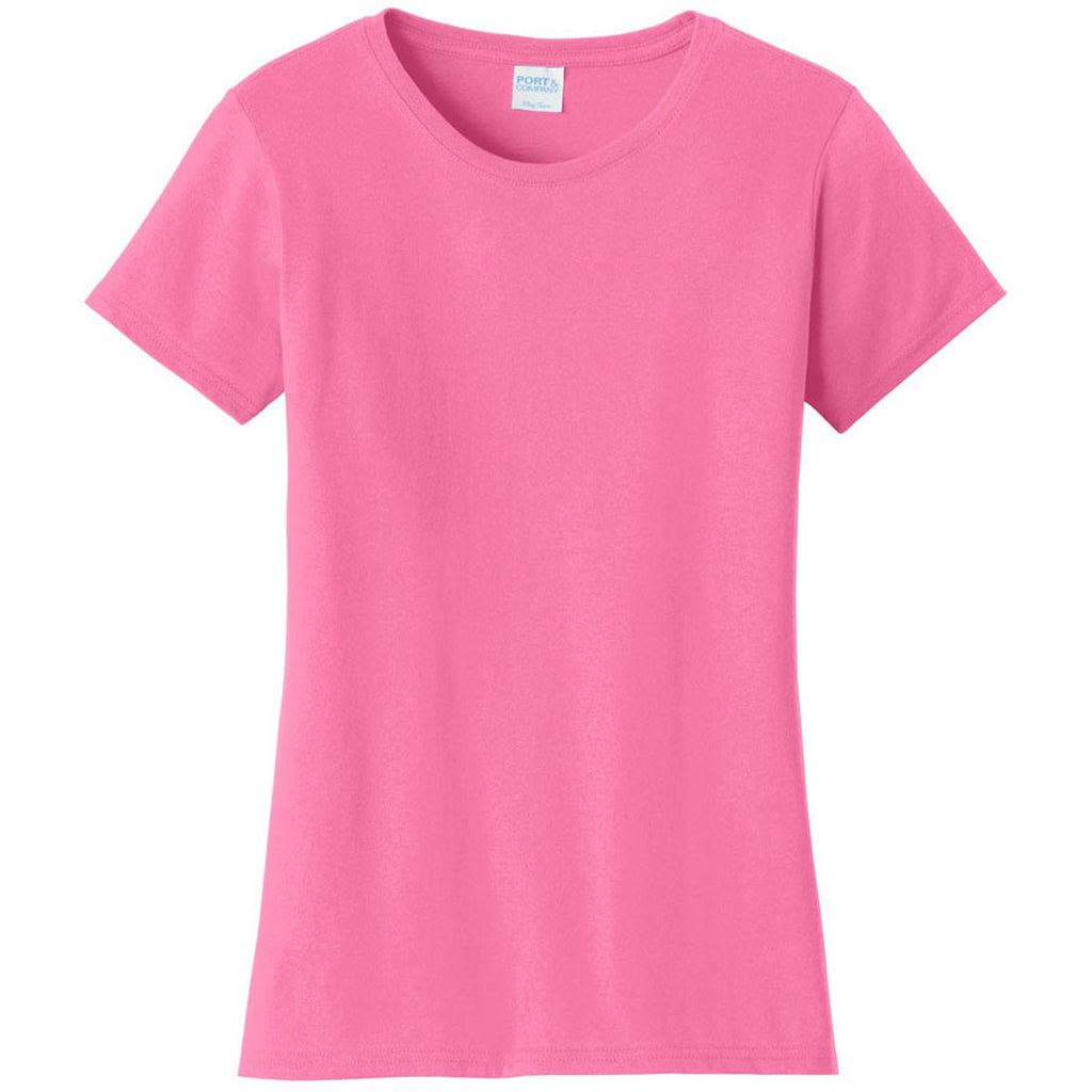 Do moisture laden t-shirts bog you down whenever you need to ramp up the competitive juices? Port & Company Women's New Pink Fan Favorite Tee contain moisture wicking technology that quickly evaporates perspiration the instant it forms on your skin. The result is a cooling of the skin that invigorates your body. Set-in sleeves allow for more arm movement, which comes in handy on the golf course and tennis court. The super soft fabric endures countless wash and dry cycles, without any of the colors fading. One-hundred percent rugged polyester interlock resists rips and tears. Attach your company logo to the t-shirts to spread the word about your brand.