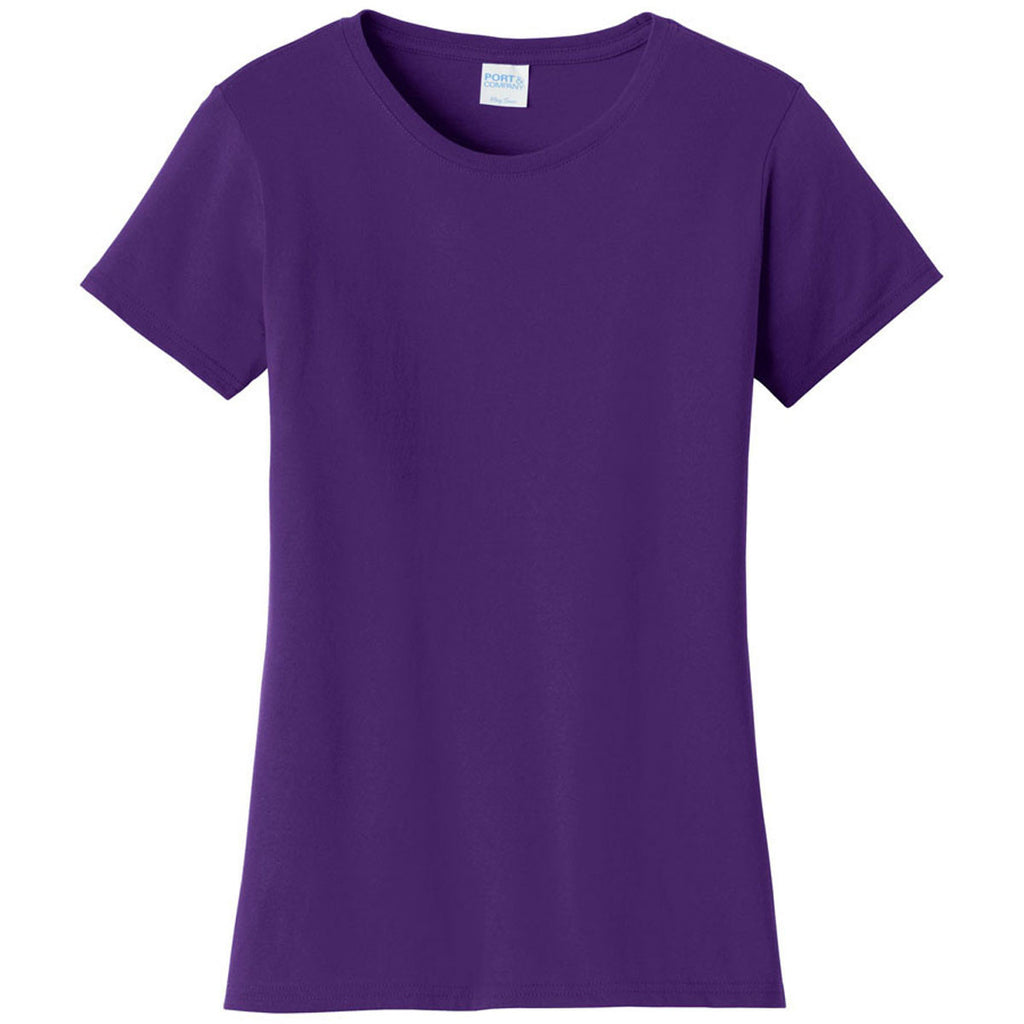 Do moisture laden t-shirts bog you down whenever you need to ramp up the competitive juices? Port & Company Women's Team Purple Fan Favorite Tee contain moisture wicking technology that quickly evaporates perspiration the instant it forms on your skin. The result is a cooling of the skin that invigorates your body. Set-in sleeves allow for more arm movement, which comes in handy on the golf course and tennis court. The super soft fabric endures countless wash and dry cycles, without any of the colors fading. One-hundred percent rugged polyester interlock resists rips and tears. Attach your company logo to the t-shirts to spread the word about your brand.
