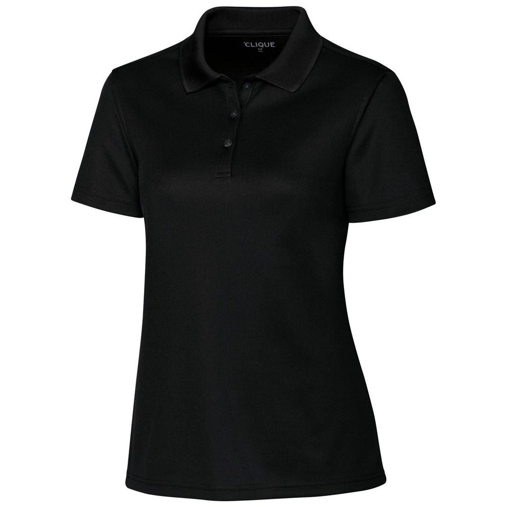 Dazzle your golf partners not only with your game, but also your fine taste in company apparel by wearing the Clique Women's Black Spin Pique Polo. Versatile enough to wear at work and after work at your favorite restaurant, the stylish polo includes a large embroidery area for attaching your corporate logo. With a company logo, you stir interest in your products and services at professional networking events. The 100% spin-dye polyester pique polo withstands the punishment delivered by active lifestyles. Forward shoulders complement the rib knit collar to define what elegant, yet functional fashion should look like.Corresponding Men's Style: Clique Men's Black Spin Pique Polo