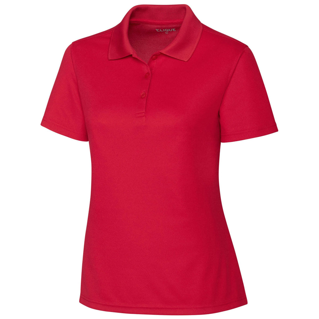 Dazzle your golf partners not only with your game, but also your fine taste in company apparel by wearing the Clique Women's Red Spin Pique Polo. Versatile enough to wear at work and after work at your favorite restaurant, the stylish polo includes a large embroidery area for attaching your corporate logo. With a company logo, you stir interest in your products and services at professional networking events. The 100% spin-dye polyester pique polo withstands the punishment delivered by active lifestyles. Forward shoulders complement the rib knit collar to define what elegant, yet functional fashion should look like.Corresponding Men's Style: Clique Men's Red Spin Pique Polo