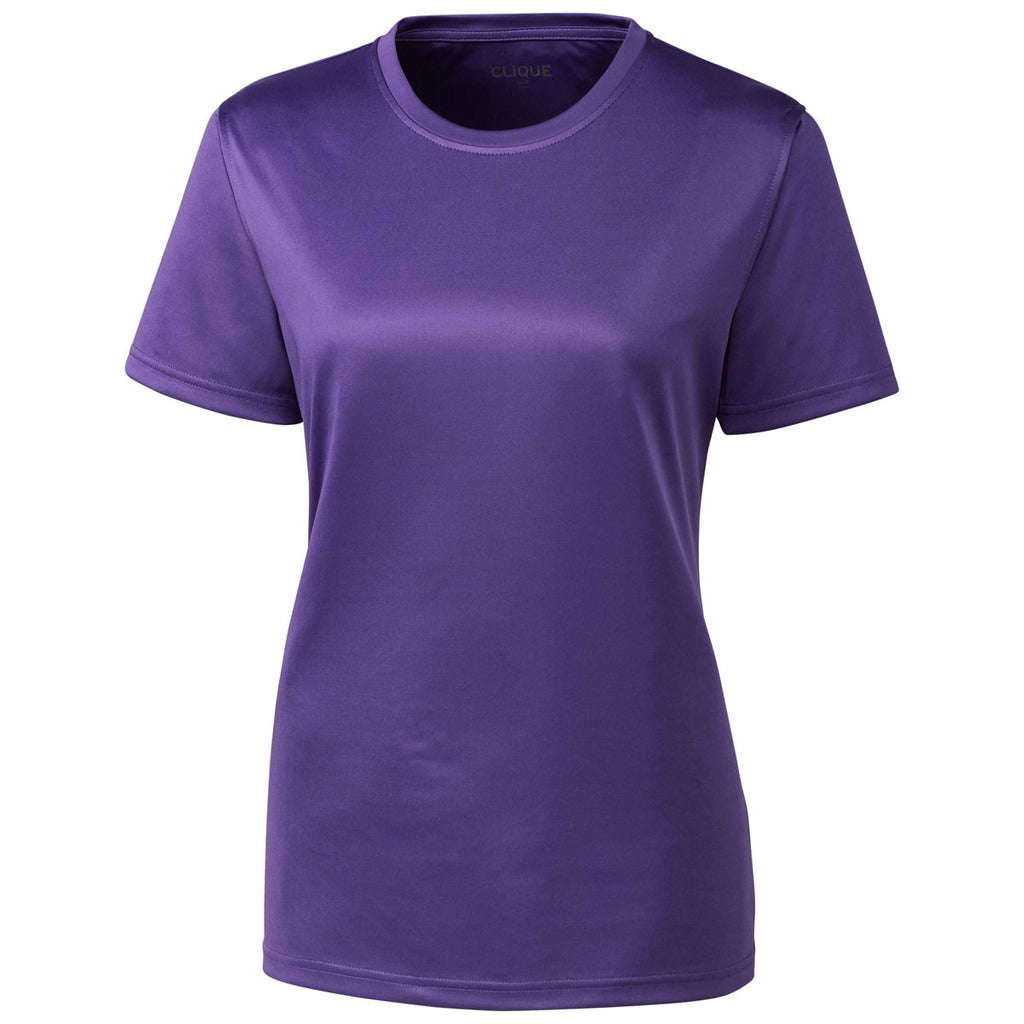 At the next company sponsored golf tournament, hand out the Clique Women's Royal Purple Spin Jersey Tee to the female members of your accomplished team. Long lasting color makes the tee perfect for frequent use in a wide variety of competitive athletic events. Designed with 100% spin-dye polyester interlock, the tee handles all of the punishment thrown at it. Add a custom logo to send the message your company stands behind high quality products and services. Open sleeves allow you to rear back and let it rip from the tees and fairways. Self-fabric neck trip adds panache to an already fashionable short sleeve shirt.