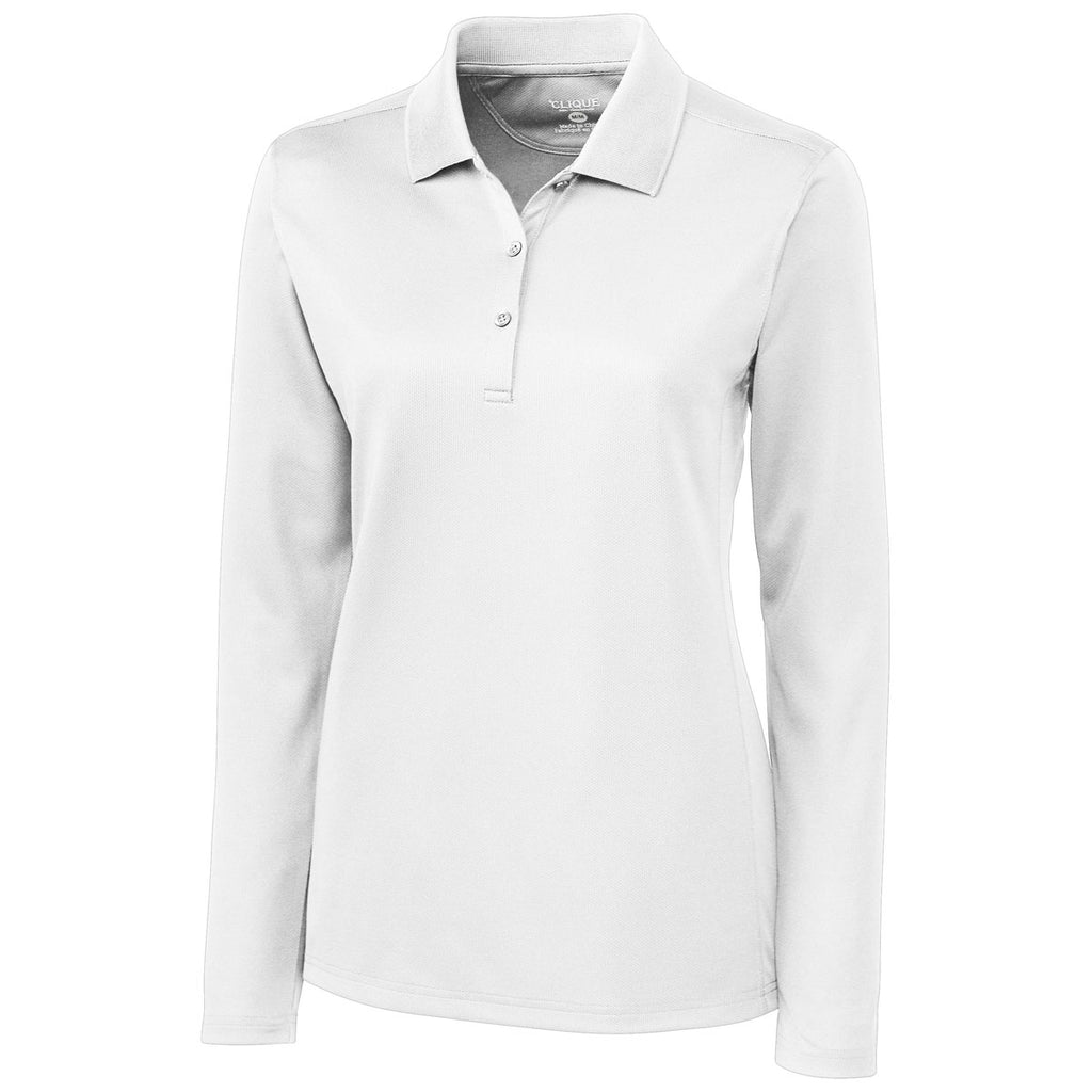 At the next industry sales conference, give away the corporate logoed Clique Women's White Long Sleeve Ice Pique Polo to build credibility for your brand. The 100% polyester mesh polo includes an embroidery area for attaching your company logo. With a custom logo, you reach more customer prospects in the community. Polyester mesh allows the fabric to breathe, which makes the pique polo perfect to wear during corporate sponsored golf tournaments. Cover stitching at the front and back body seams resist rips and tears to deliver years of incredible fashion performance.Corresponding Men's Style: Clique Men's White Long Sleeve Ice Pique Polo
