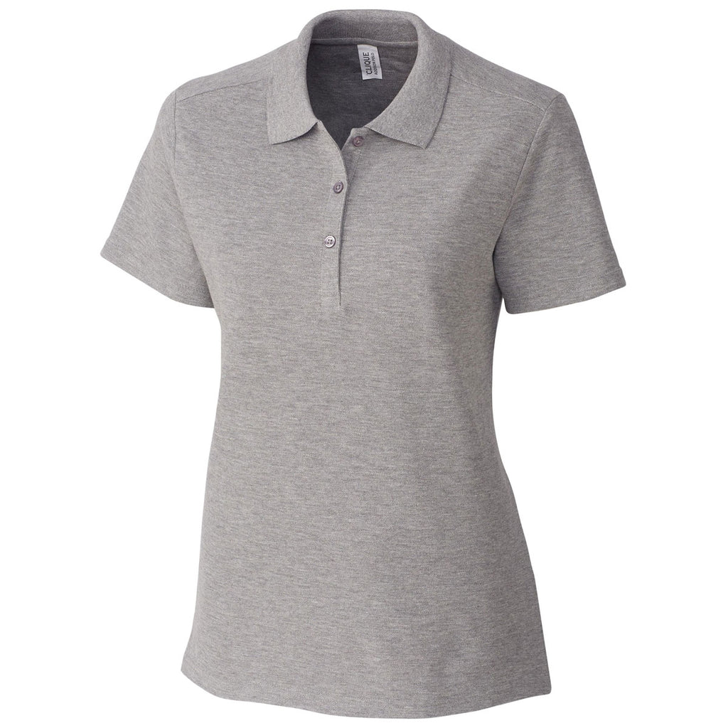 Before the next company sponsored golf tournament, hand out the highly comfortable Clique Women's Grey Melange Addison Polo to thank the customers that help drive sales. By giving away a complimentary polo, you build more goodwill and stir interest in your products and services everywhere your loyal customers travel. The 100% cotton pique polo includes a large area for adding embroidery. Add a custom logo to reach more people at civic events. The forward shoulder and three-button placket present a dignified look that makes your team stand out at industry sales conferences.Corresponding Men's Style: Clique Men's Grey Melange Addison Polo
