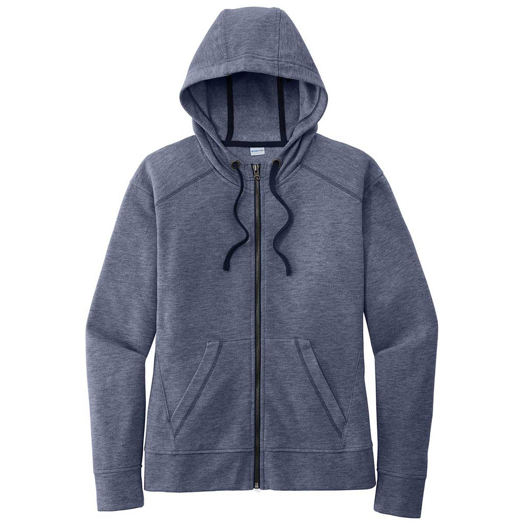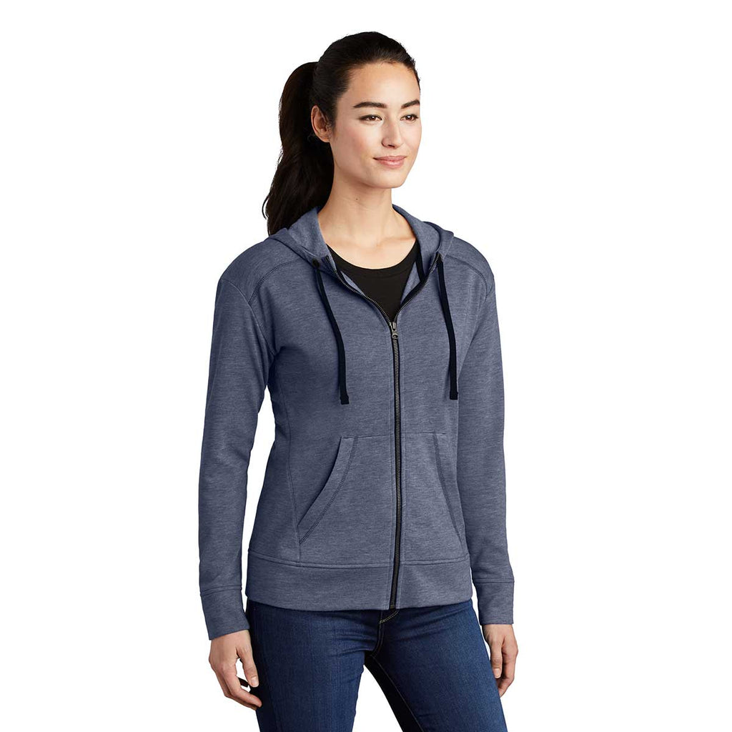 Sport-Tek Women's True Navy Heather PosiCharge Tri-Blend Wicking Fleece Full-Zip