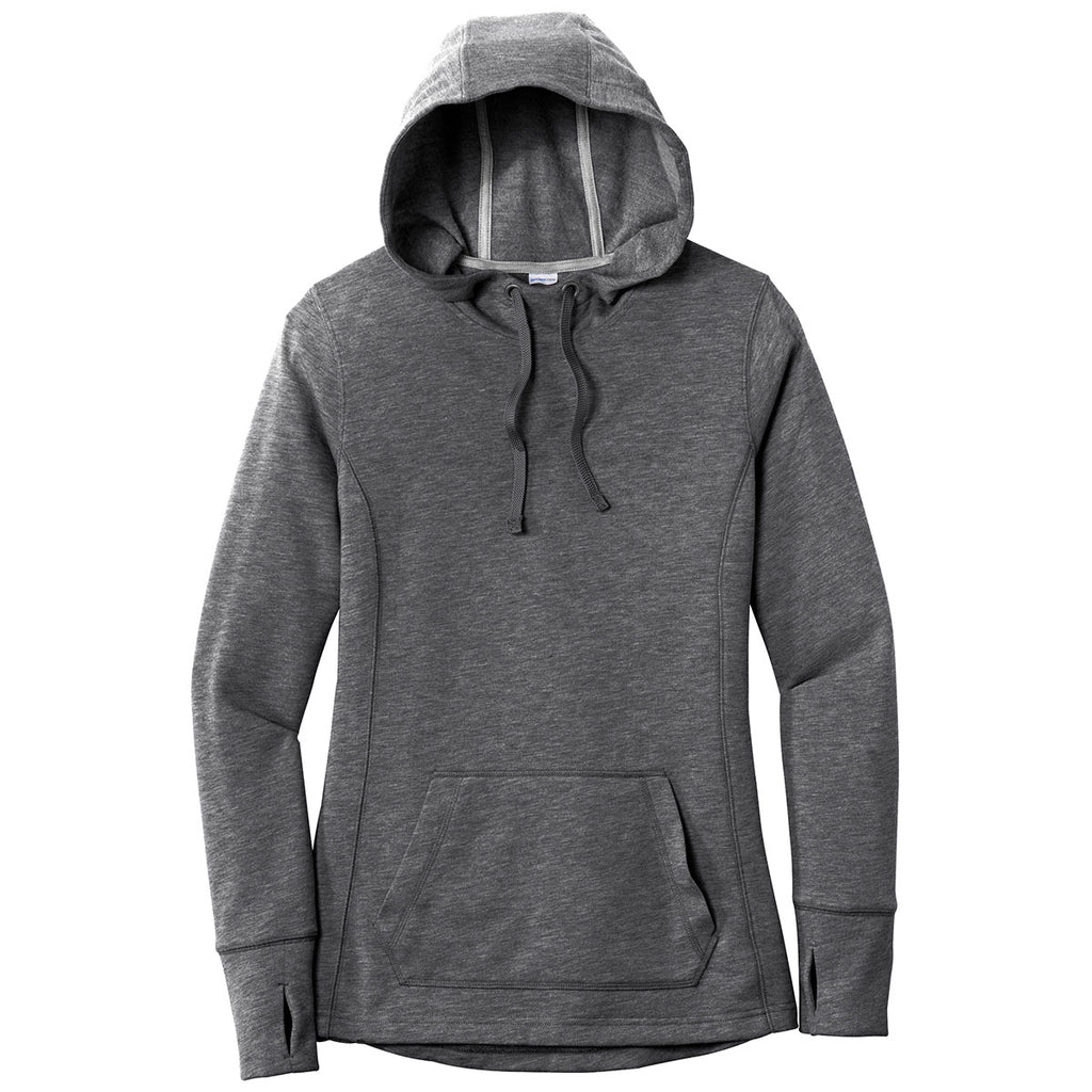 Sport-Tek Women's Dark Grey Heather PosiCharge Tri-Blend Wicking Fleece Hooded Pullover