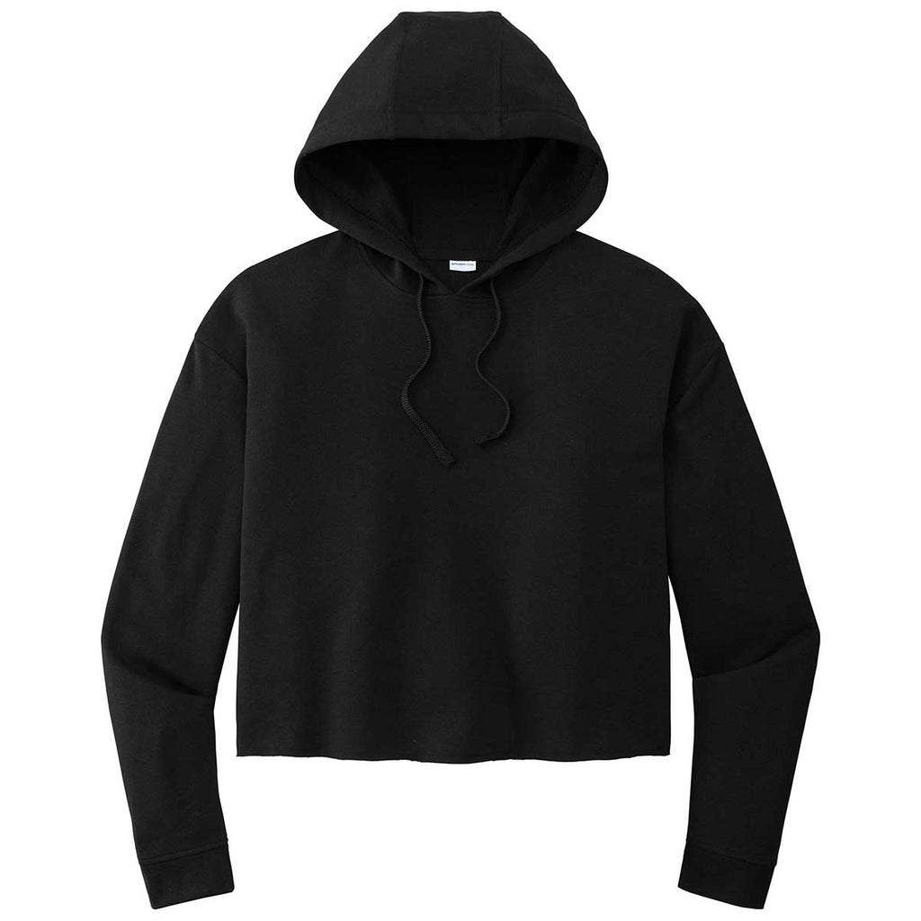 Sport-Tek Women's Black Triad Solid PosiCharge Tri-Blend Wicking Fleece Crop Hoodie