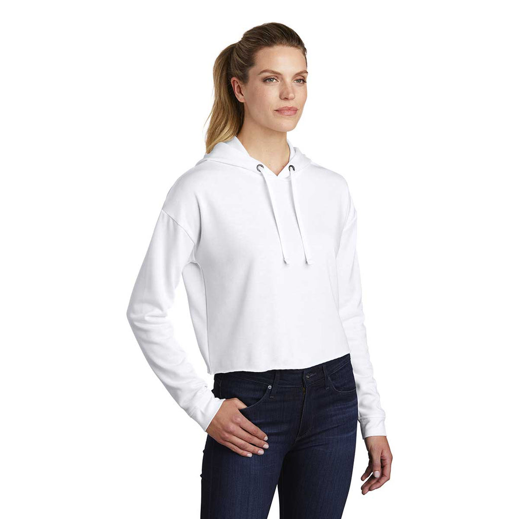 Sport-Tek Women's White Triad Solid PosiCharge Tri-Blend Wicking Fleece Crop Hoodie