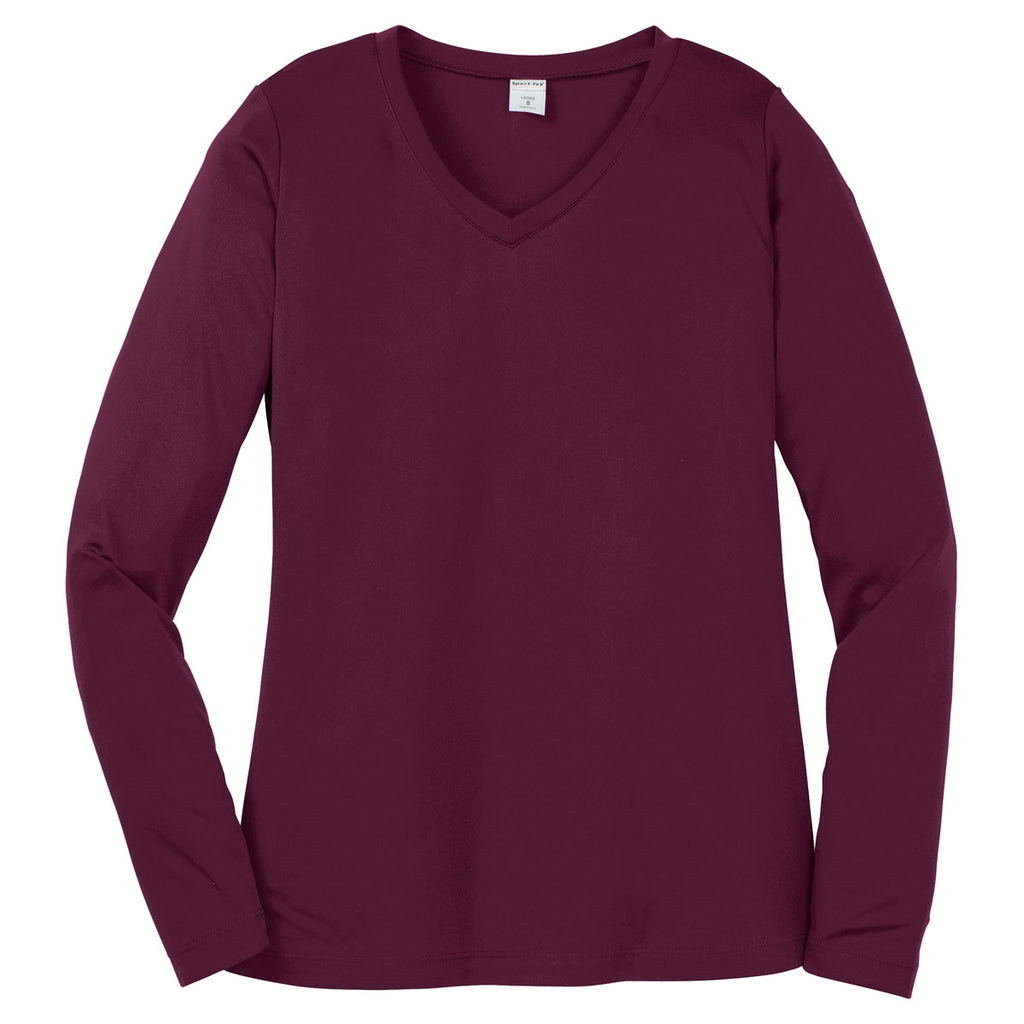 Sport-Tek Women's Maroon Long Sleeve PosiCharge Competitor V-Neck Tee
