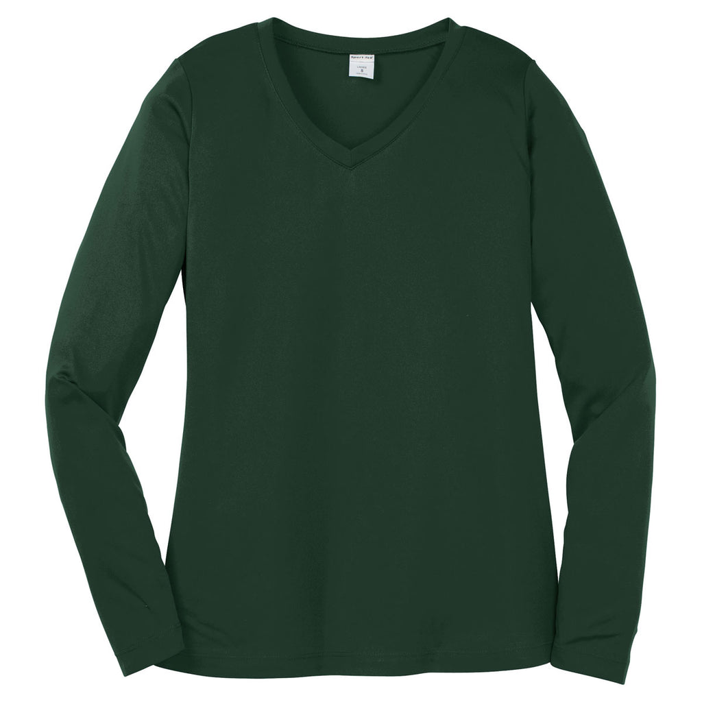 Sport-Tek Women's Forest Green Long Sleeve PosiCharge Competitor V-Neck Tee