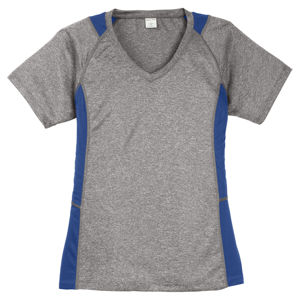 Sport-Tek Women's Vintage Heather/True Royal Heather Colorblock Contender V-Neck Tee
