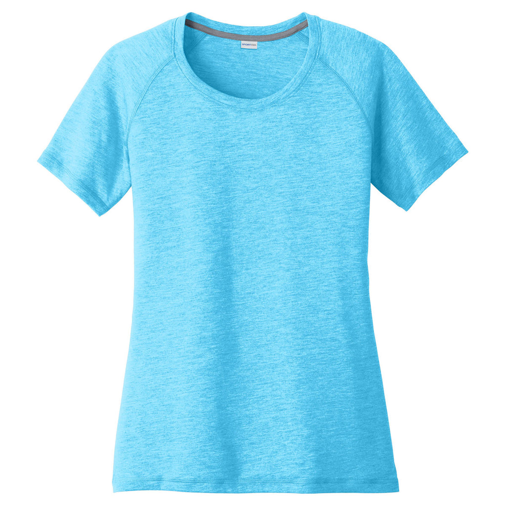 Sport-Tek Women's Pond Blue Heather PosiCharge Tri-Blend Scoop Neck Tee