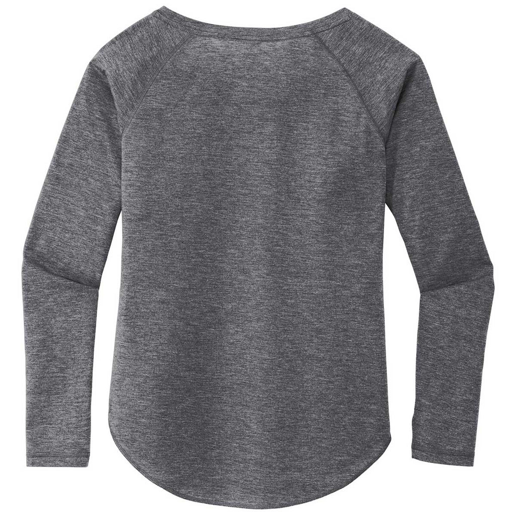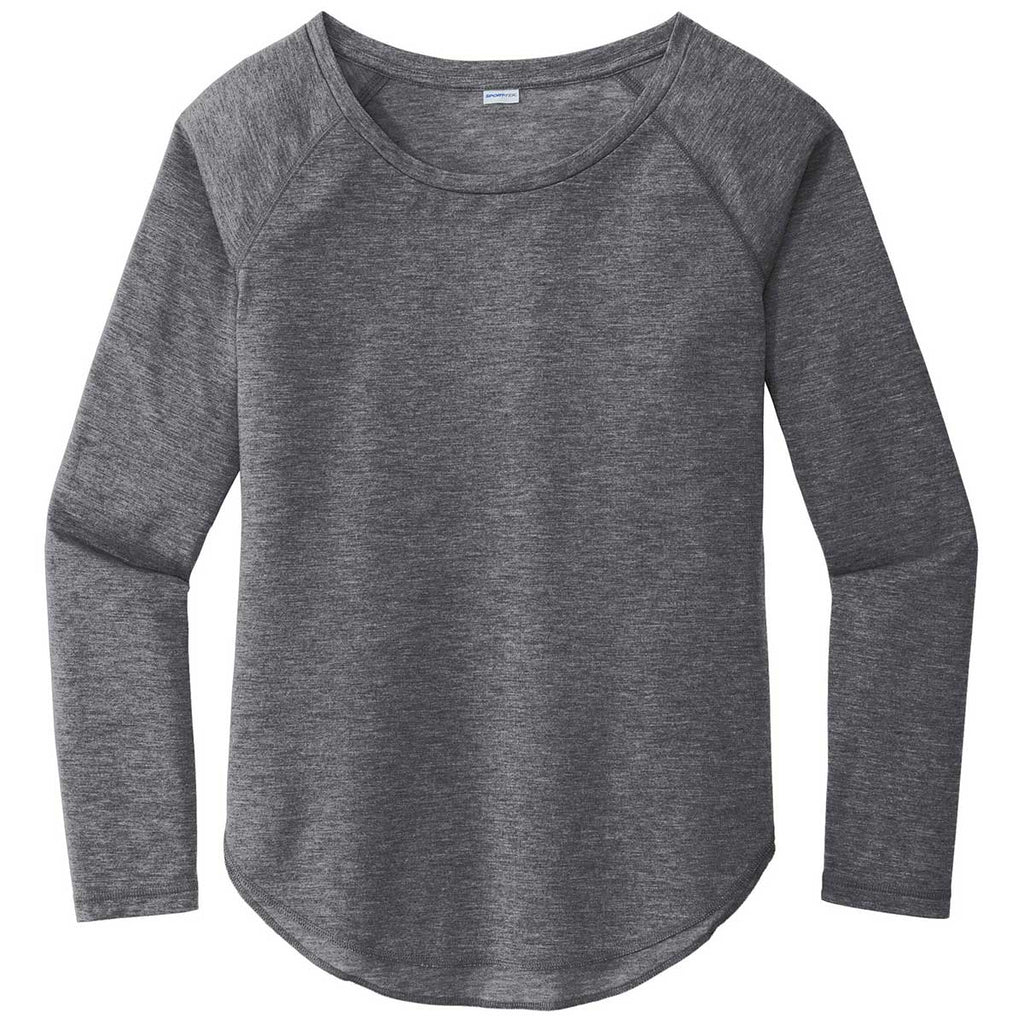 Sport-Tek Women's Dark Grey Heather PosiCharge Long Sleeve Tri-Blend Wicking Scoop Neck Raglan Tee