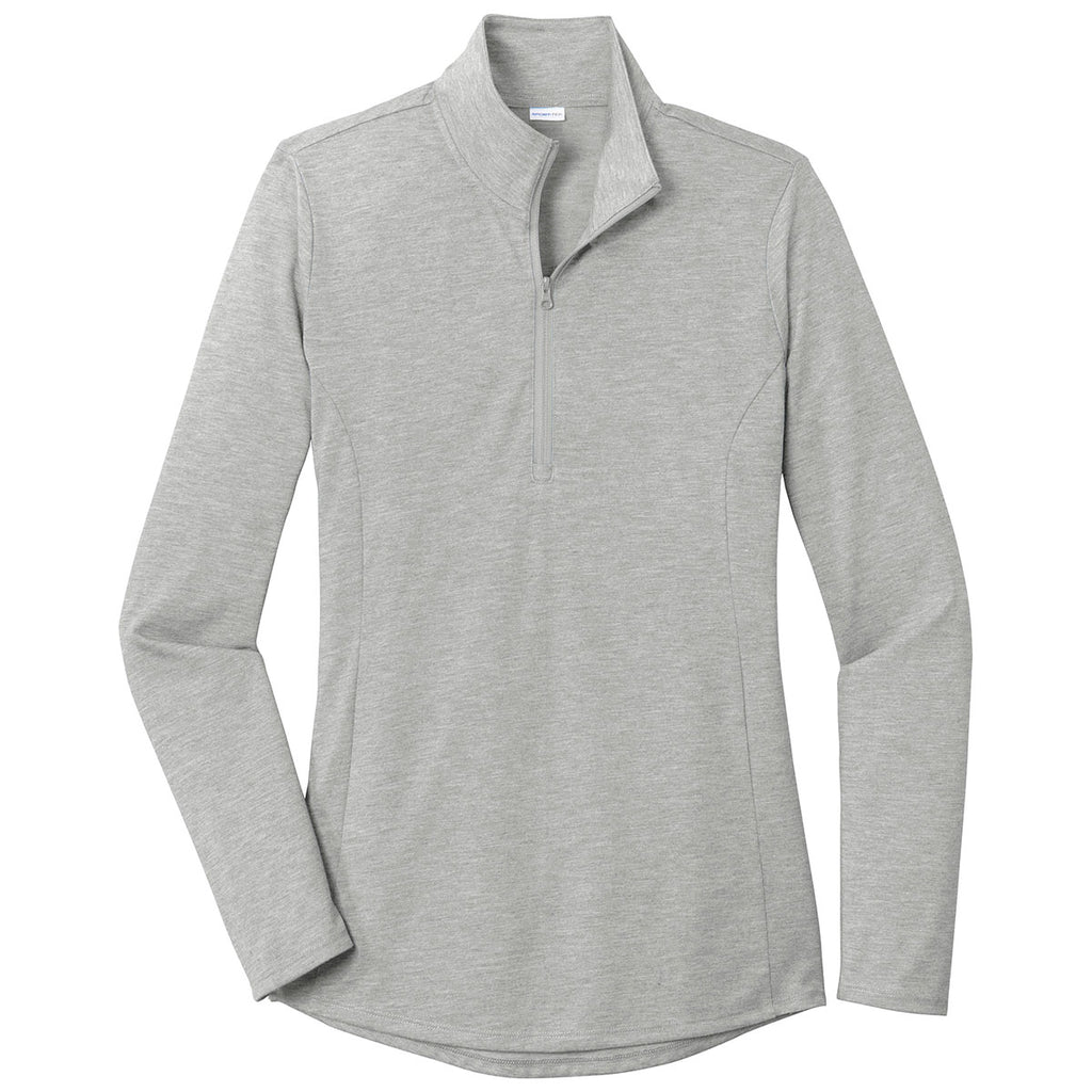 Sport-Tek Women's Light Grey Heather PosiCharge Tri-Blend Wicking 1/4-Zip Pullover