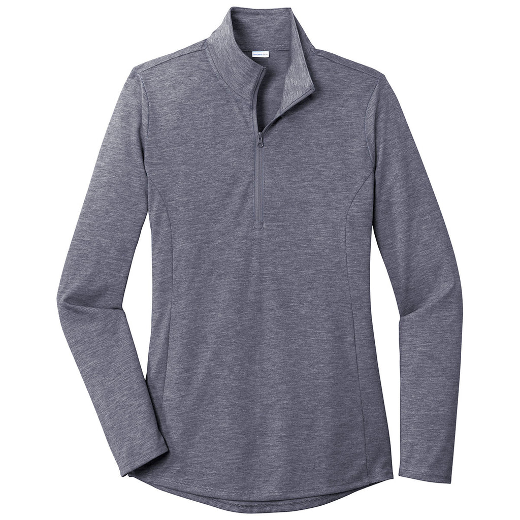 Sport-Tek Women's True Navy Heather PosiCharge Tri-Blend Wicking 1/4-Zip Pullover