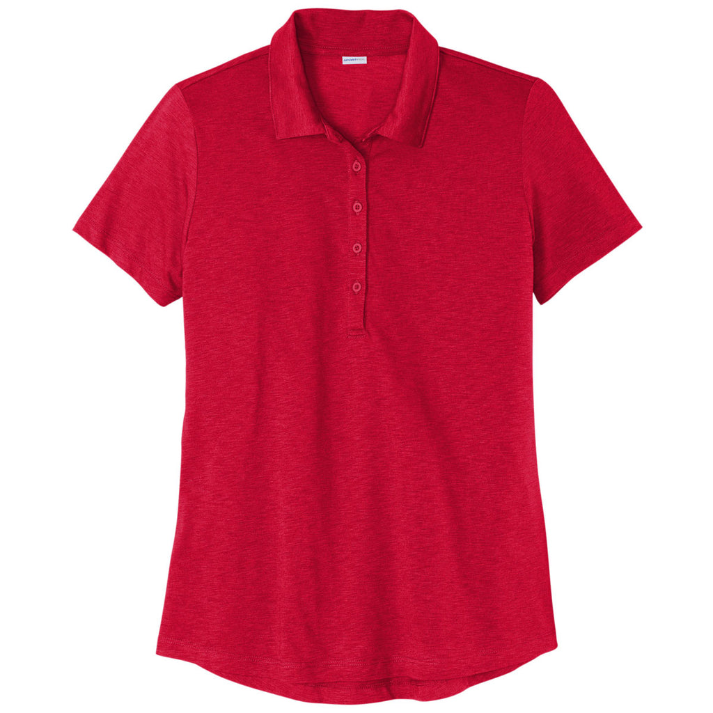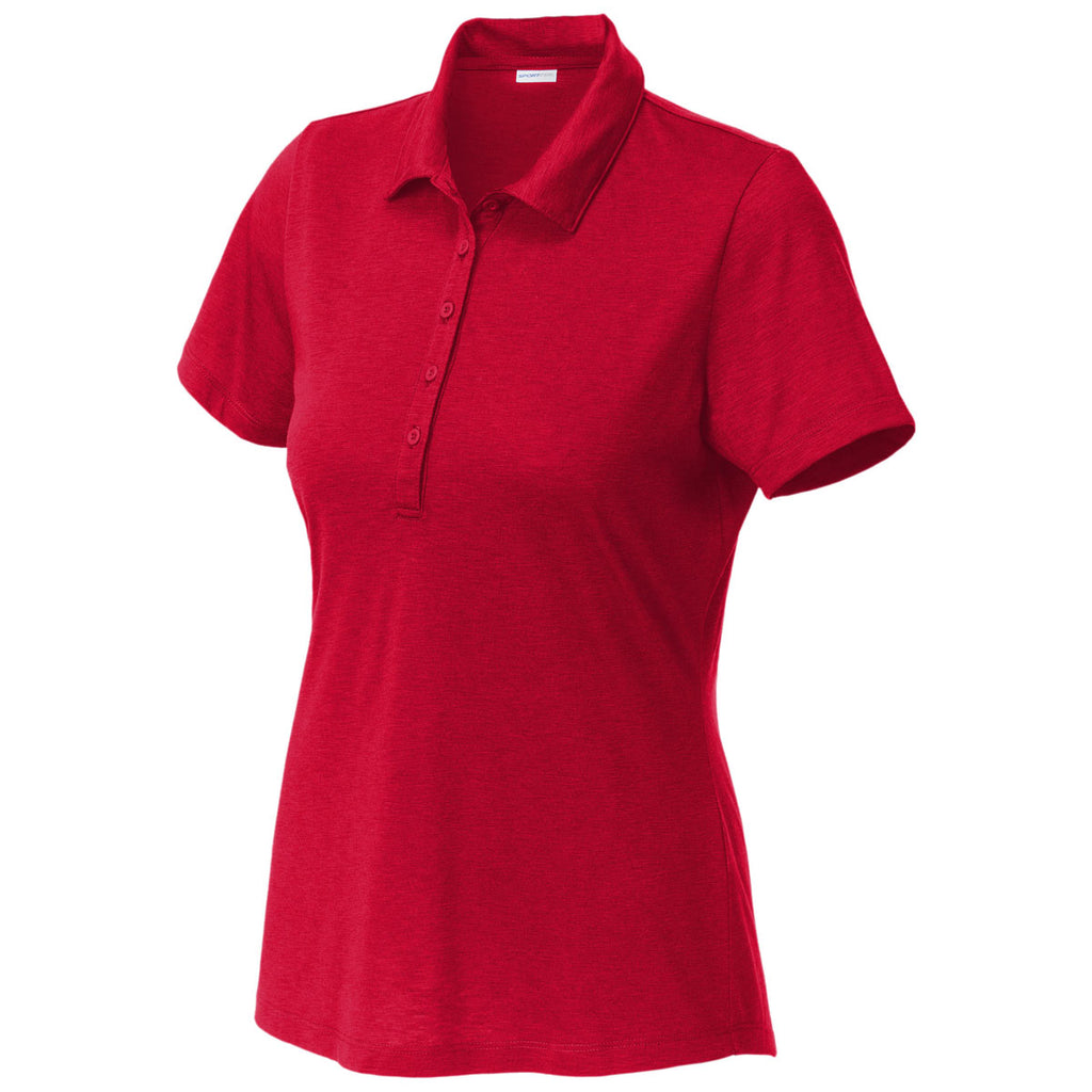 Stand out in a custom embroidered Sport-Tek Women's Deep Red PosiCharge Strive Polo that is inspired by streetwear, but maintains a put together look. The elevated heathered polos are moisture wicking and help maintain color and logos due to the PosiCharge technology. Add a custom logo to create a look for your school, team, or club that will stand out among the crowd, Try a company logo to use as employee apparel for special events or daily wear as this polo is ready for whatever your day holds.Corresponding Men's Style:Sport-Tek Men's Deep Red PosiCharge Strive Polo
