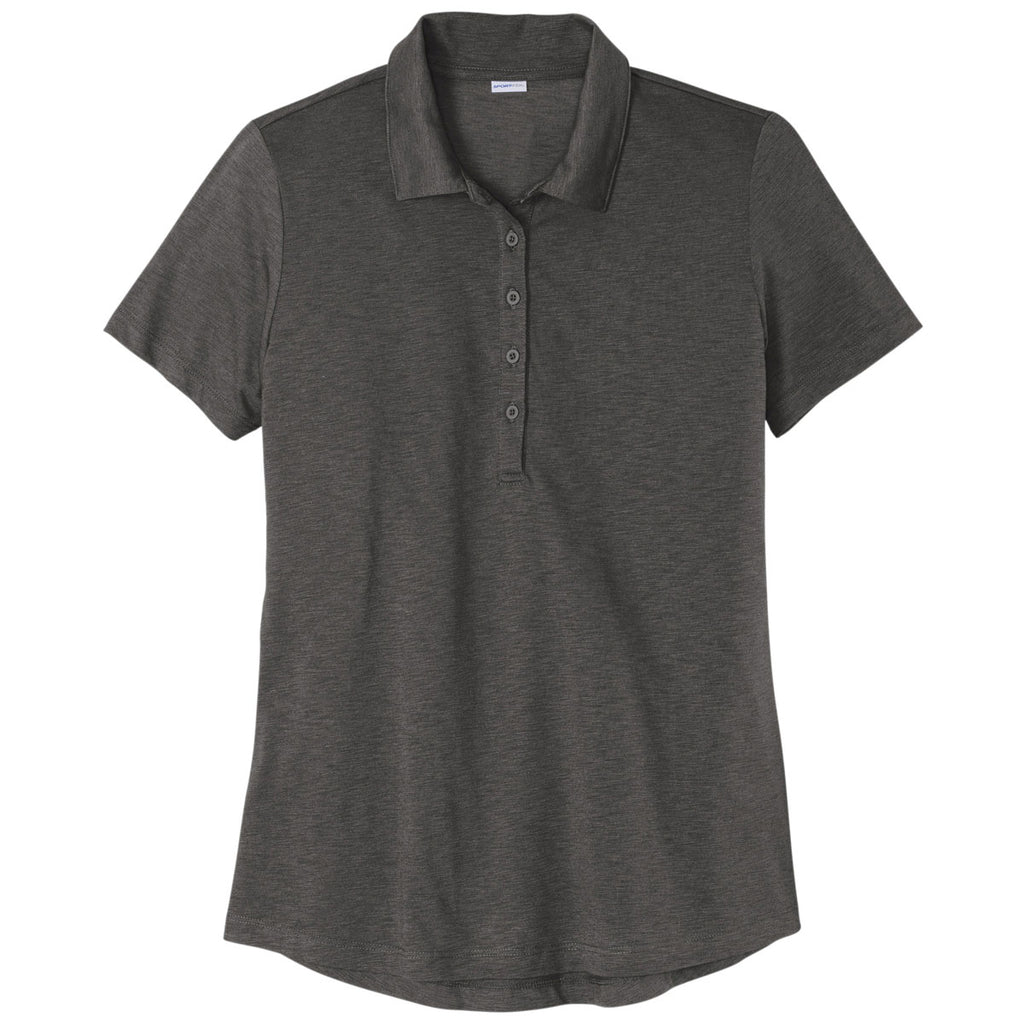 Stand out in a custom embroidered Sport-Tek Women's Graphite PosiCharge Strive Polo that is inspired by streetwear, but maintains a put together look. The elevated heathered polos are moisture wicking and help maintain color and logos due to the PosiCharge technology. Add a custom logo to create a look for your school, team, or club that will stand out among the crowd, Try a company logo to use as employee apparel for special events or daily wear as this polo is ready for whatever your day holds.Corresponding Men's Style:Sport-Tek Men's Graphite PosiCharge Strive Polo