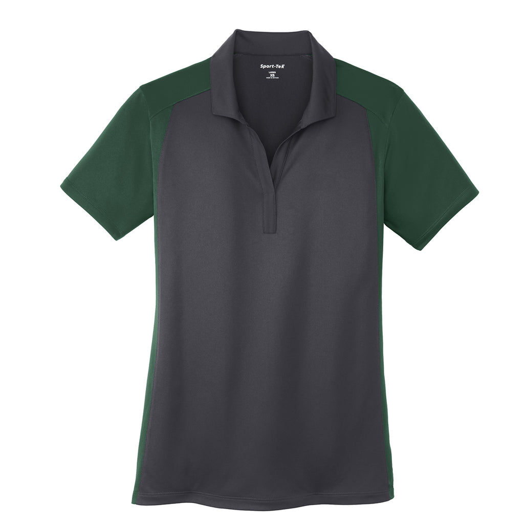 Sport-Tek Women's Iron Grey/Forest Green Colorblock Micropique Sport-Wick Polo